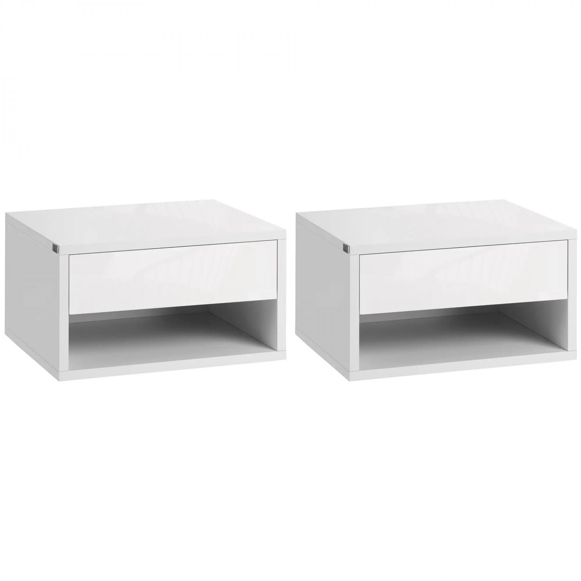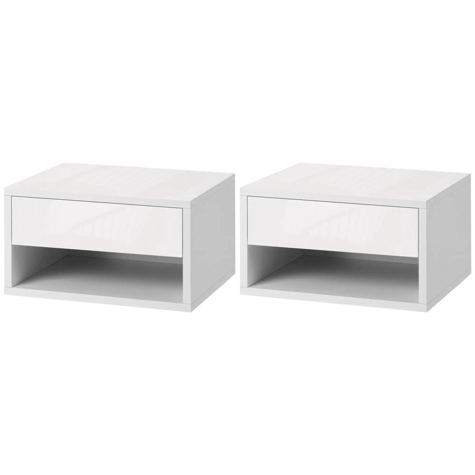 Juego de 2 Mesitas de Noche Colgantes Mesillas de Noche con Cajón para Dormitorio 37x32x21 cm Blanco