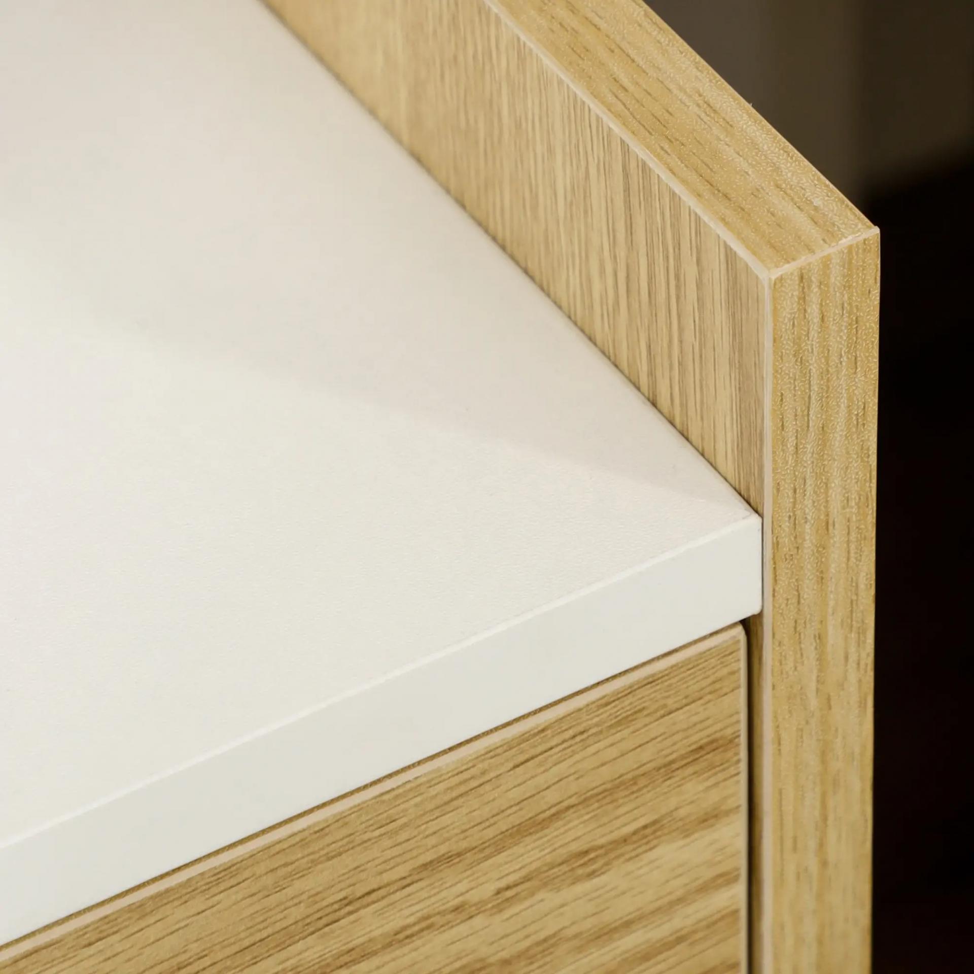 - ESTILO MODERNO Y ELEGANTE: Su diseño de la combinación de panel lateral en madera natural y superficie blanca crea un aspecto limpio, moderno y minimalista que combina fácilmente con cualquier estilo de dormitorio o salón