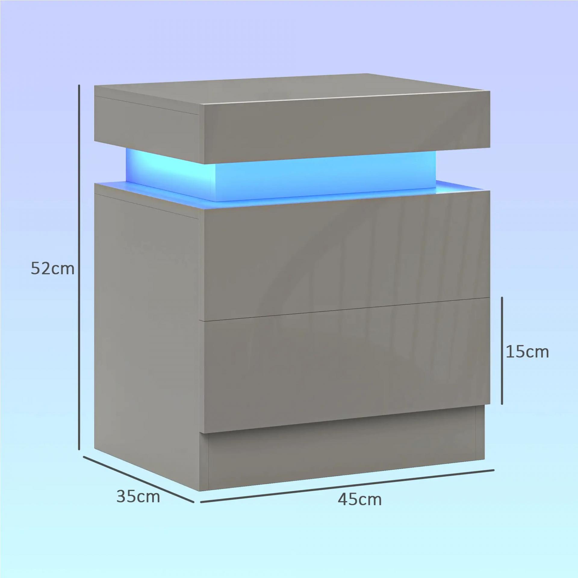 Mesilla de Noche con Luces LED 2 Cajones y Control de APP Mesa de Noche para Dormitorio Salón 45x35x52 cm Gris
