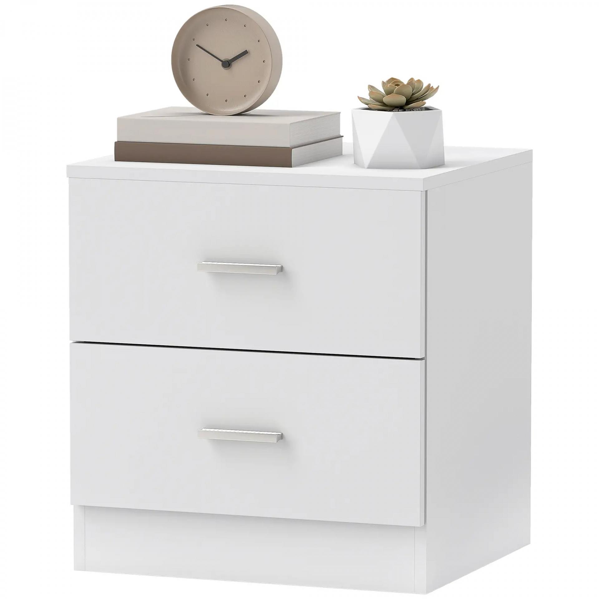 Mesilla de Noche con 2 Cajones Mesita Auxiliar para Salón Dormitorio Carga 30 kg 45x39,5x49 cm Blanco