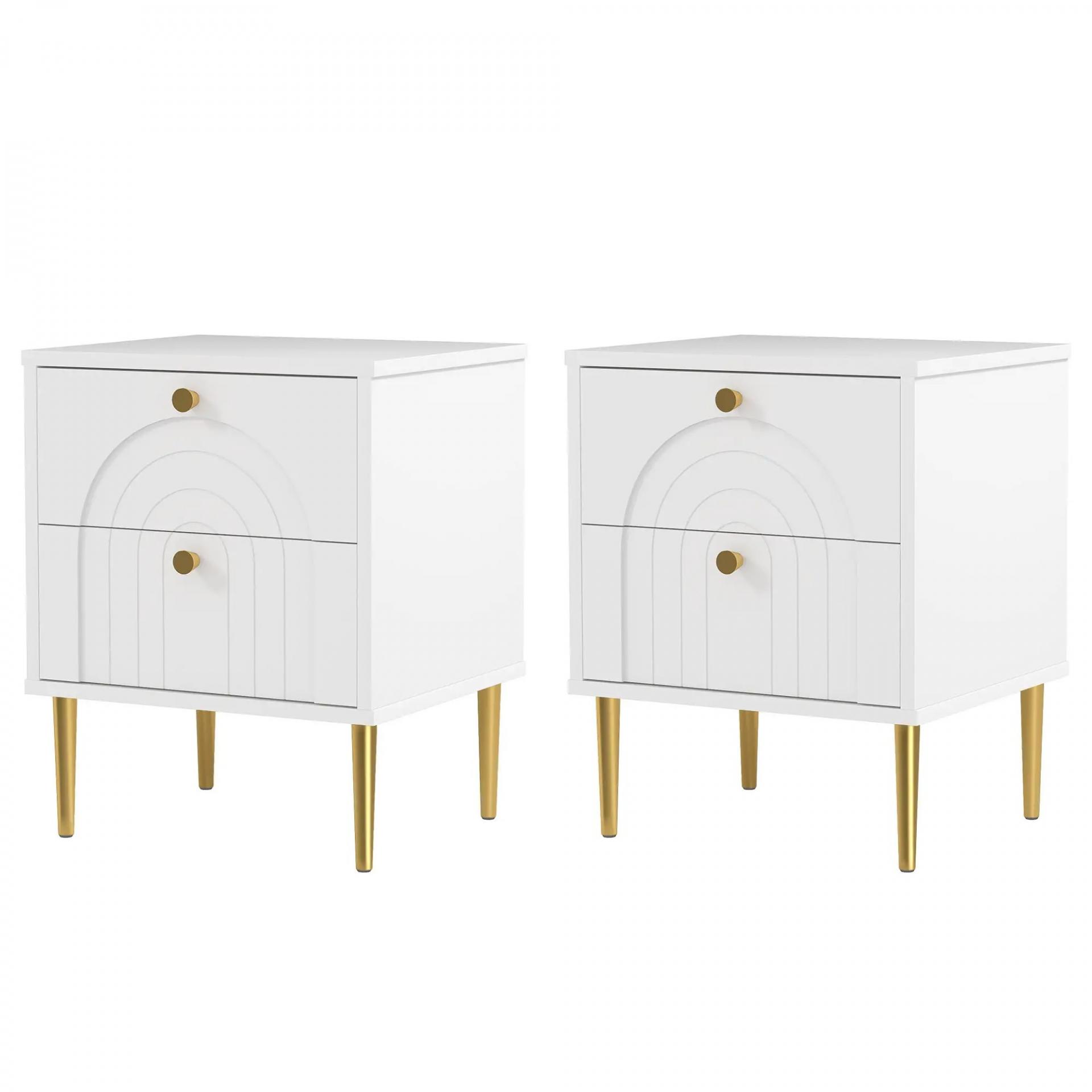 Pack de 2 Mesillas de Noche Dormitorio con 2 Cajones y Patas de Acero Estilo Moderno 40x35x50 cm Blanco
