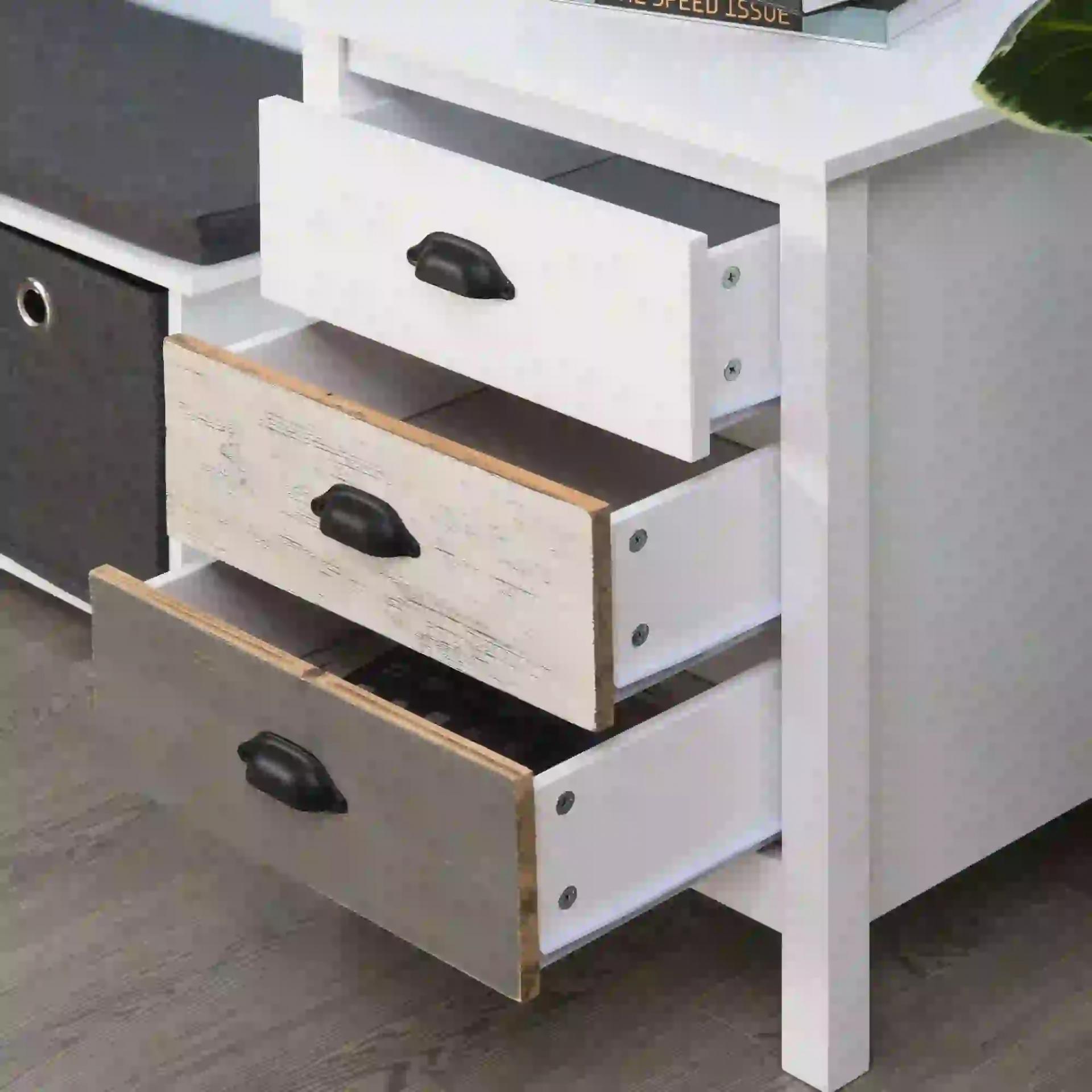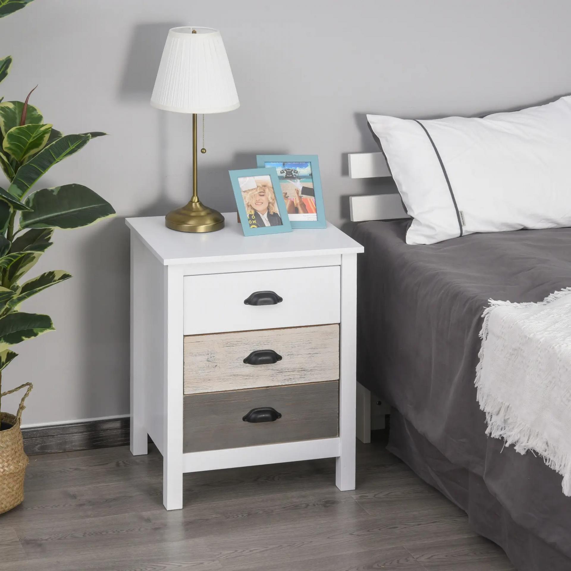 Mesilla de Noche con 3 Cajones Mesa de Noche para Dormitorio Salón 50x38x65 cm Blanco