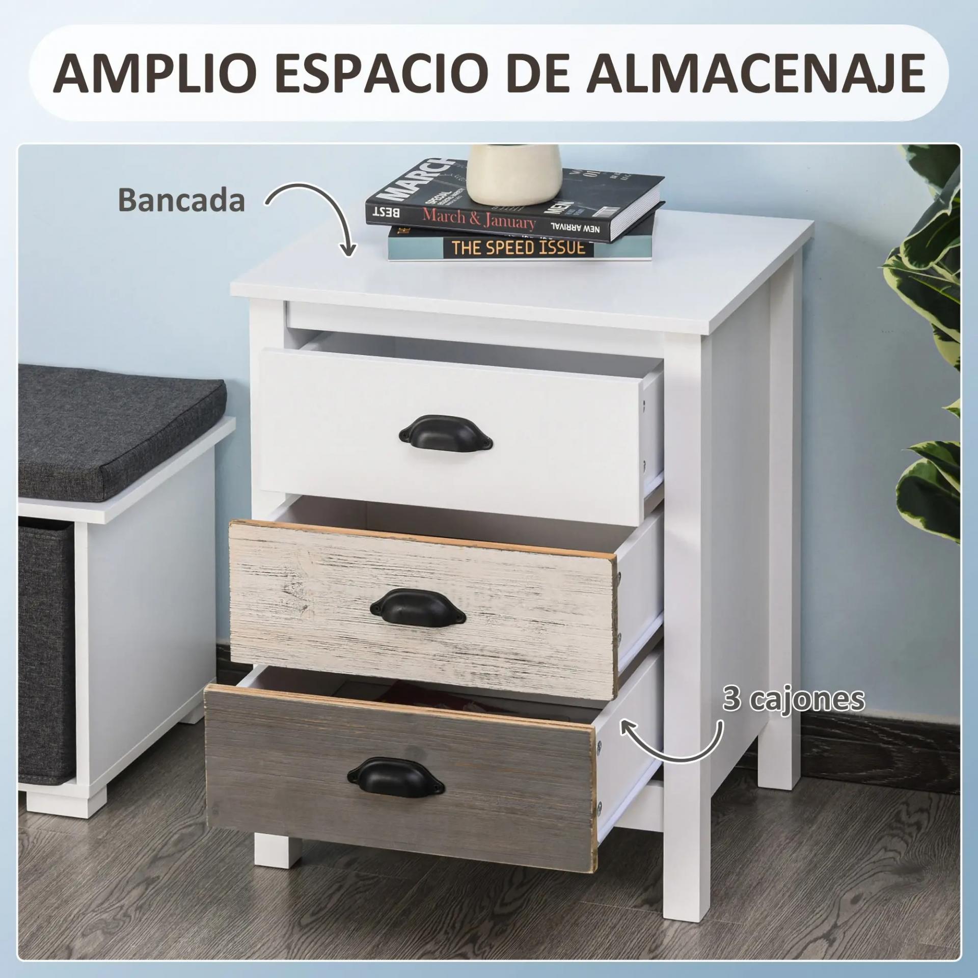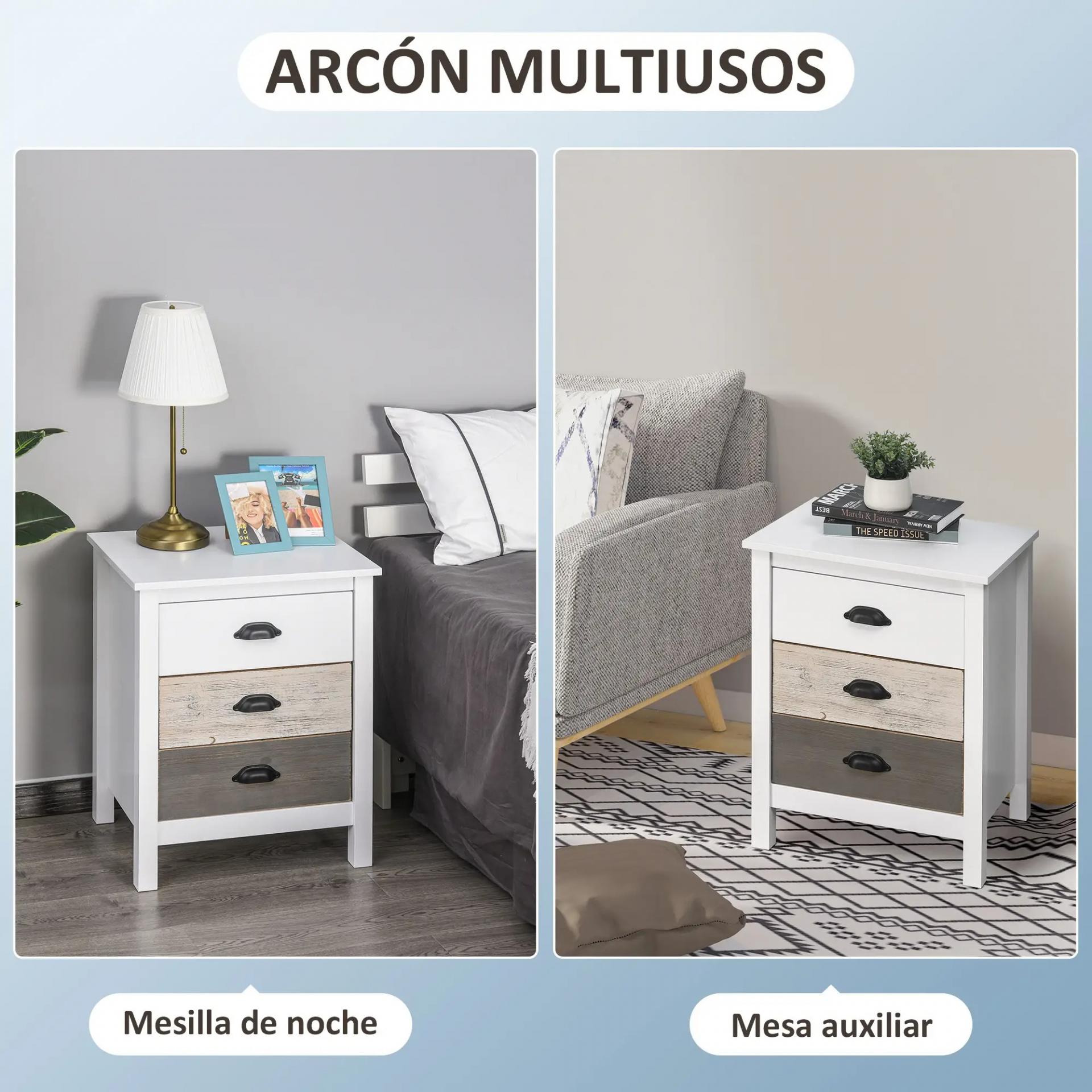 - AMPLIO ESPACIO DE ALMACENAJE: Esta mesa de noche para dormitorio con tres cajones, despídete del desorden. Mantén un vaso de agua a mano y guarda tus artículos personales, evitando levantarte de la cama