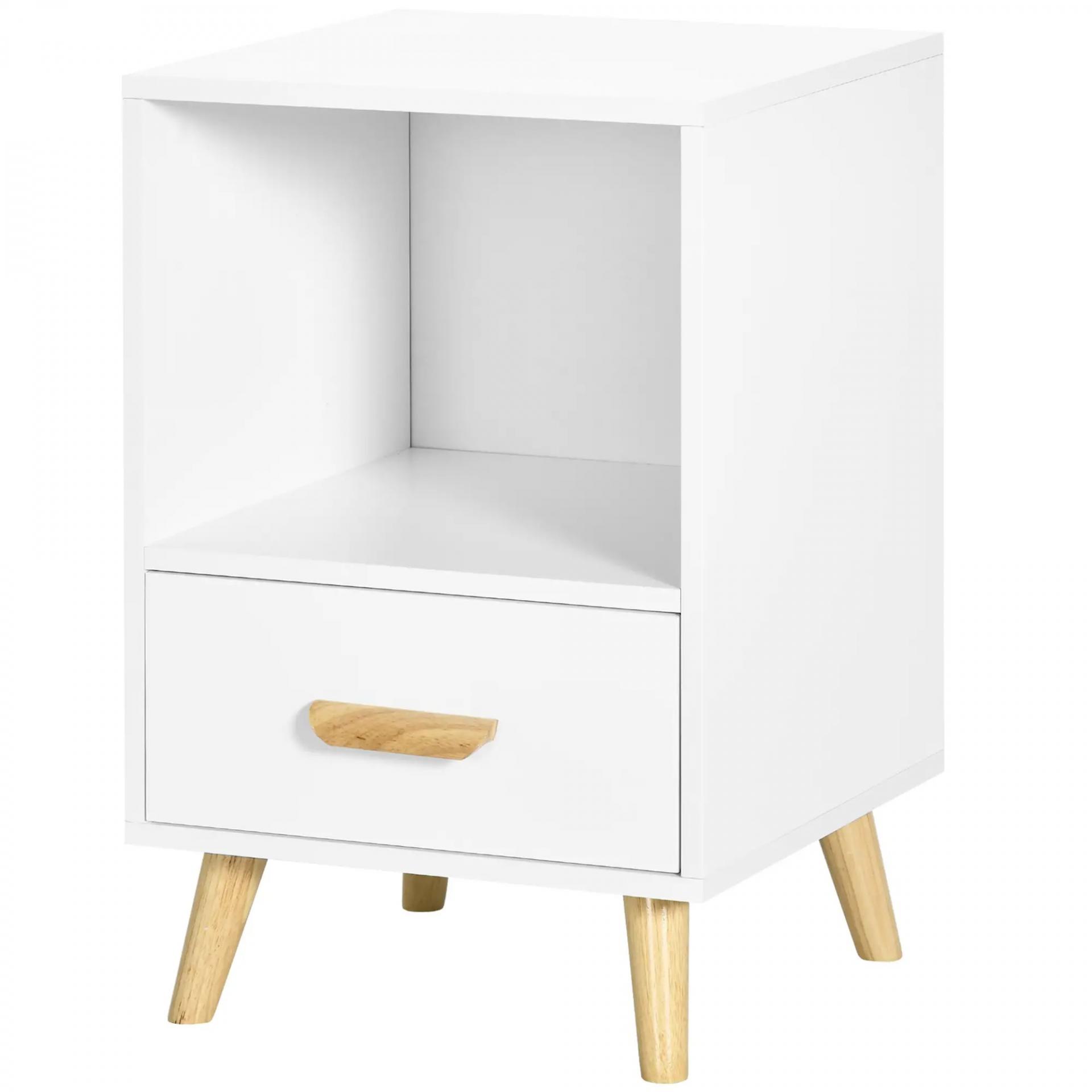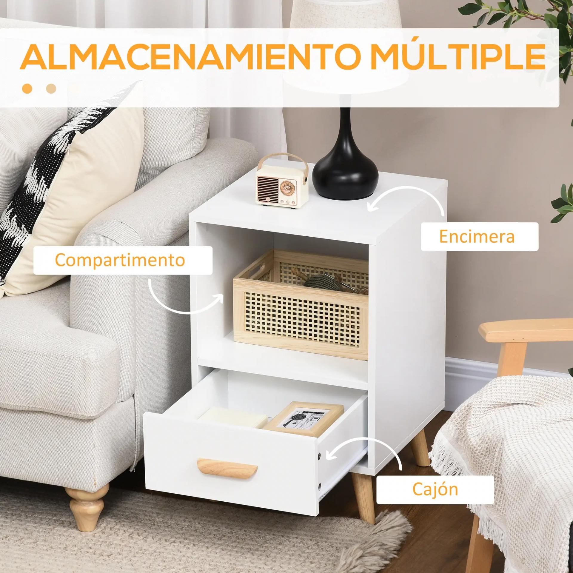 Mesita de Noche con 1 Cajón y Estante Mesa Auxiliar de Estilo Nórdico para Salón Dormitorio 40x40x62 cm Blanco