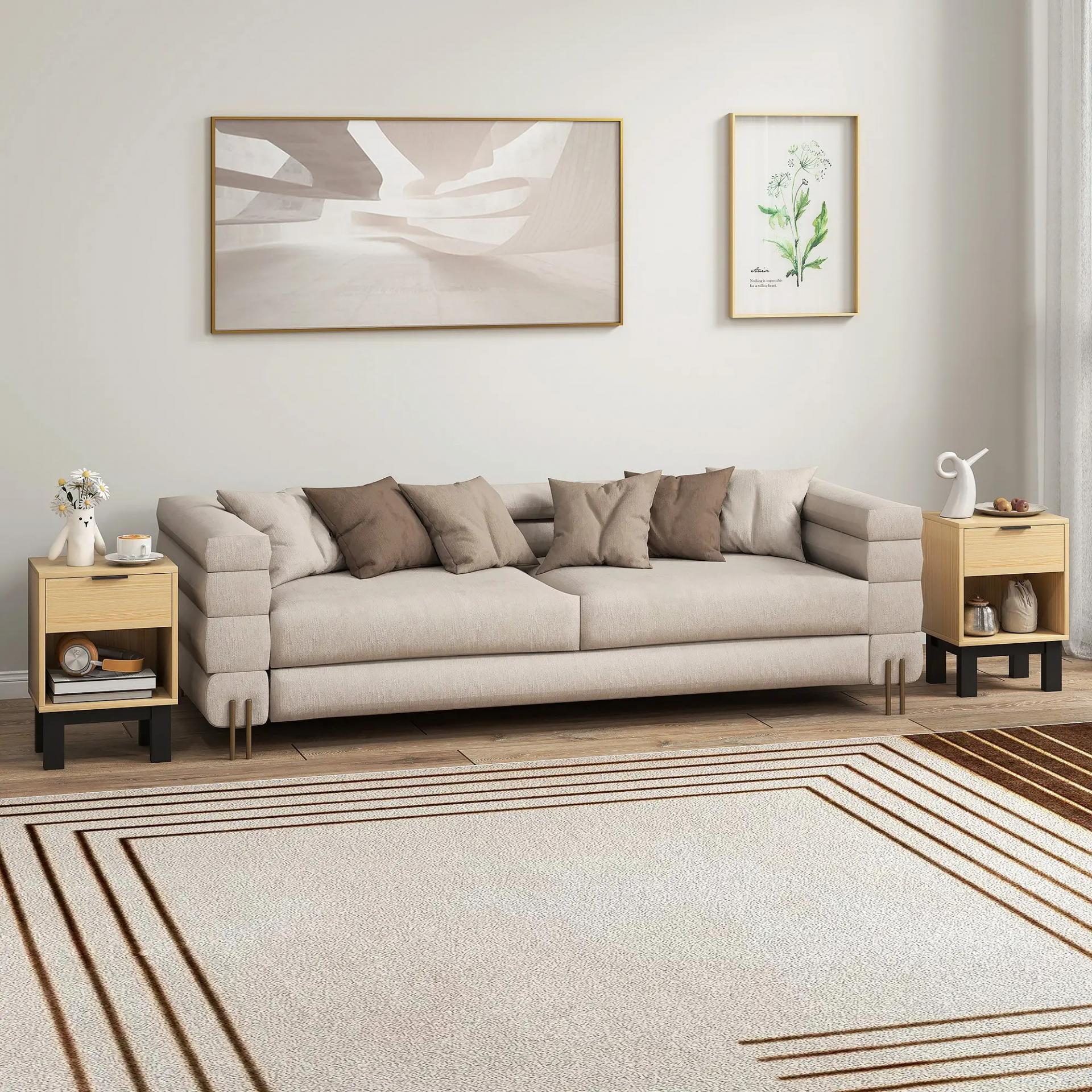 DISEÑO VERSÁTIL: Este conjunto de mesillas de noche se adapta a diferentes usos, ya sea como mesita de noche, mesa auxiliar en el salón o mueble de almacenamiento en pasillos. Su estilo simple y elegante combina fácilmente en cualquier espacio
