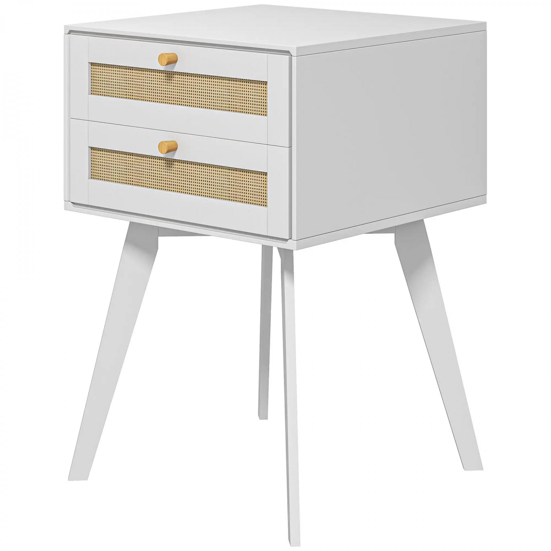 Mesilla de Noche Blanca Mesita de Noche con 2 Cajones Estilo Cannage Mesita Auxiliar Pequeña 40x40x60 cm
