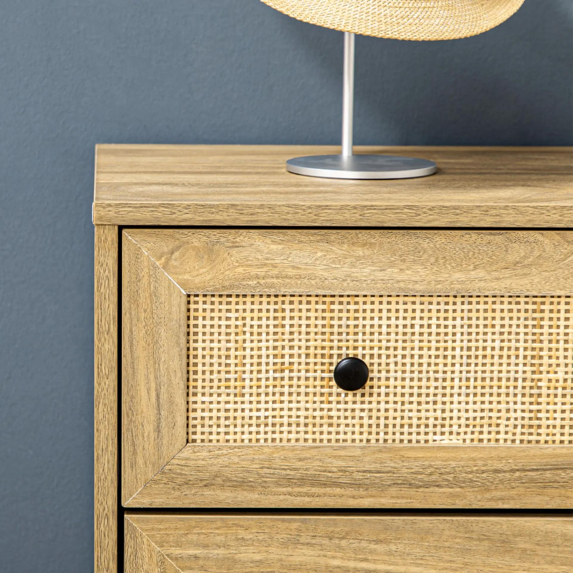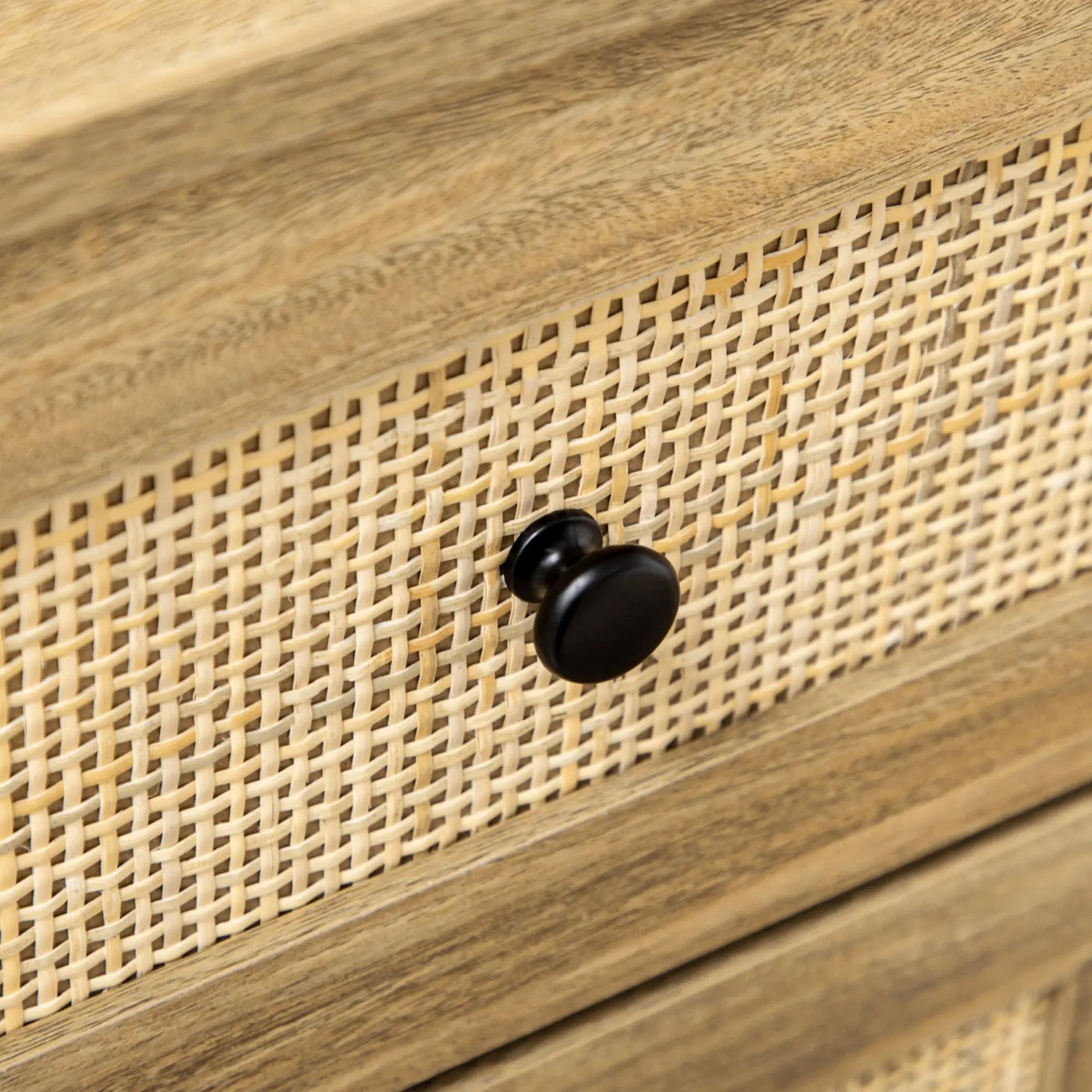 Cómoda con 4 Cajones Cajonera de Madera con Frontales de Ratán Estilo Cannage para Dormitorio 80x35x95 cm Natural