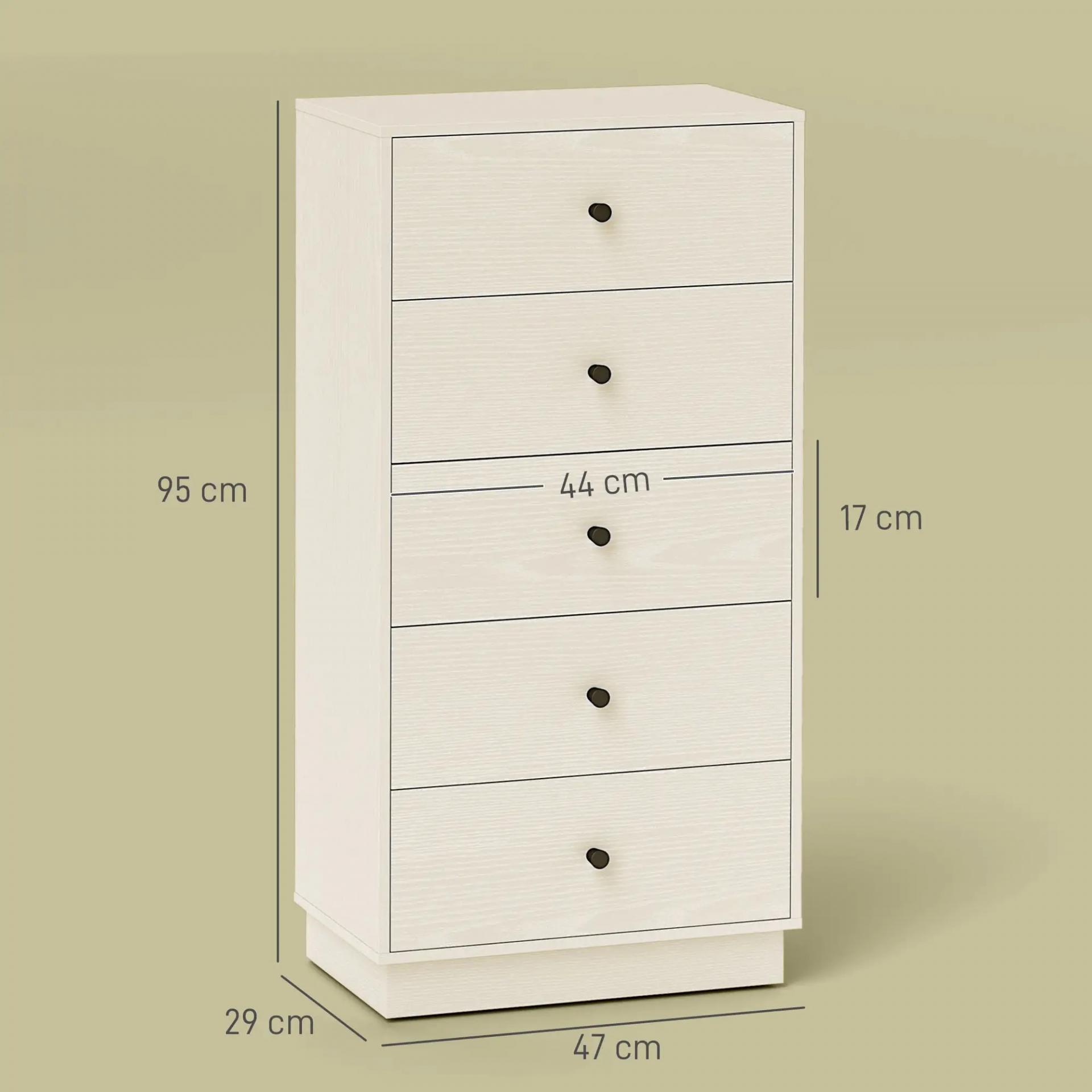 Cómoda de 5 Cajones Estrecha y Alta Mueble Auxiliar para Dormitorio o Pasillo con Tiradores Redondos 47x29x95 cm Beige