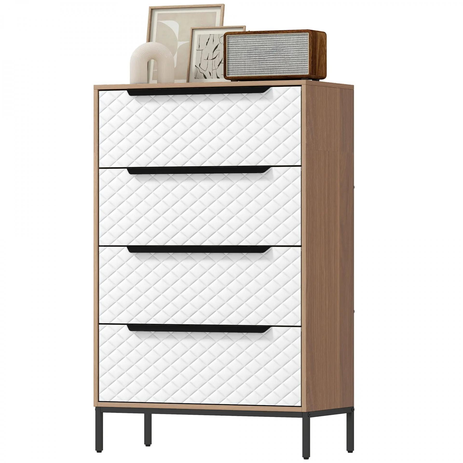 Cómoda con 4 Cajones de Tela Frentes con Patrón de Diamante para Salón Oficina Vestidor Natural y Blanco