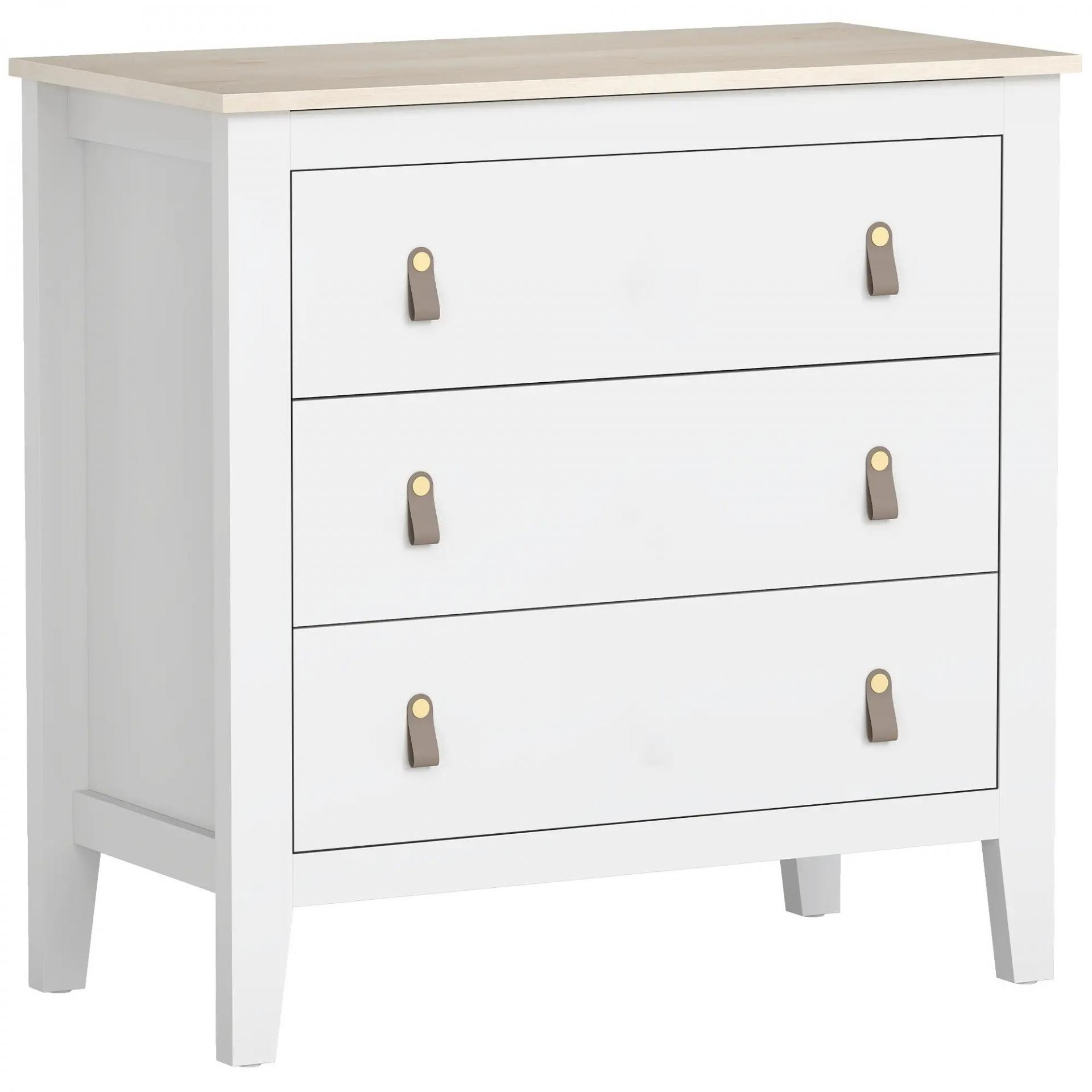 Cómoda para Dormitorio con 3 Cajones Tiradores de PU Cajonera para Salón Pasillo 80x40x78,5 cm Blanco