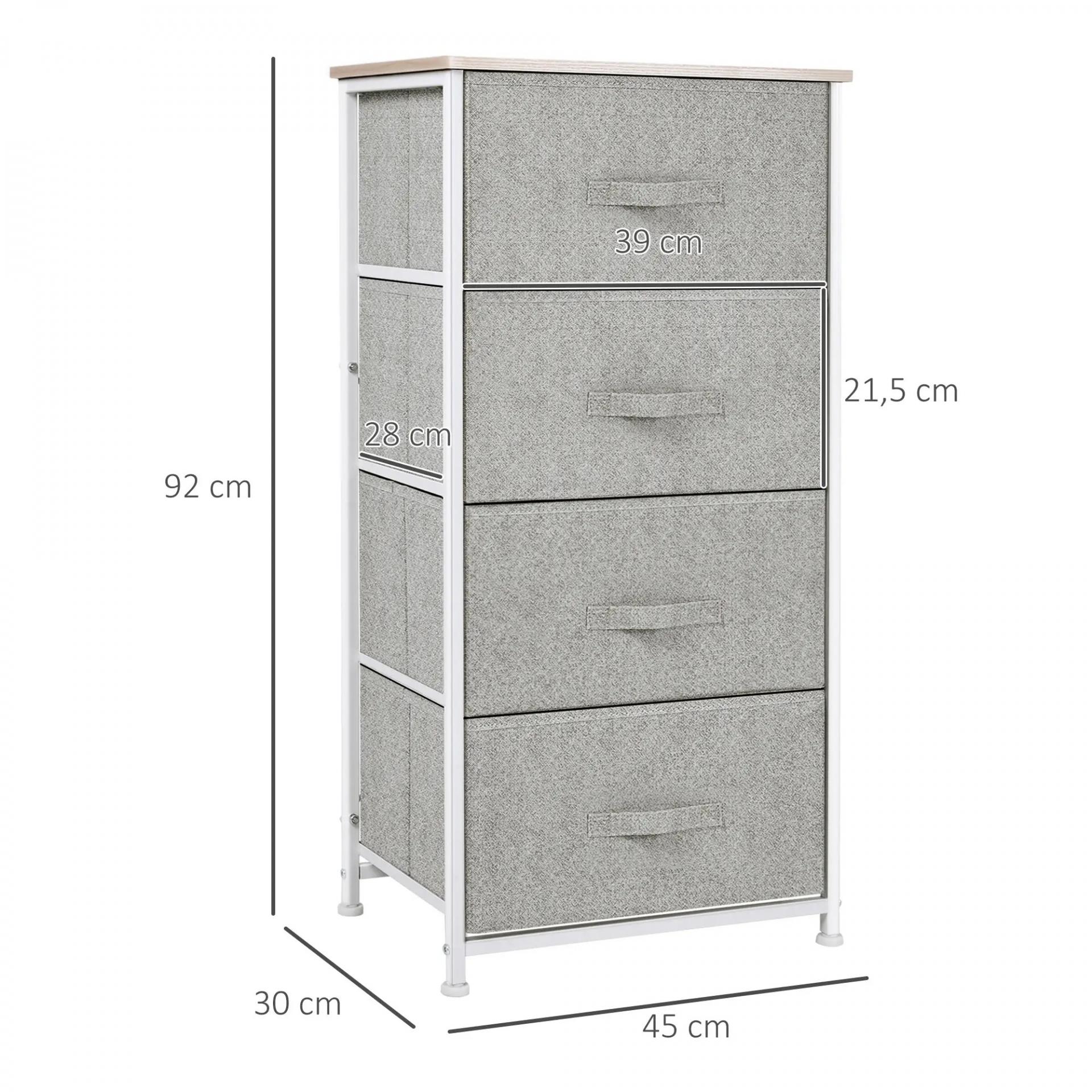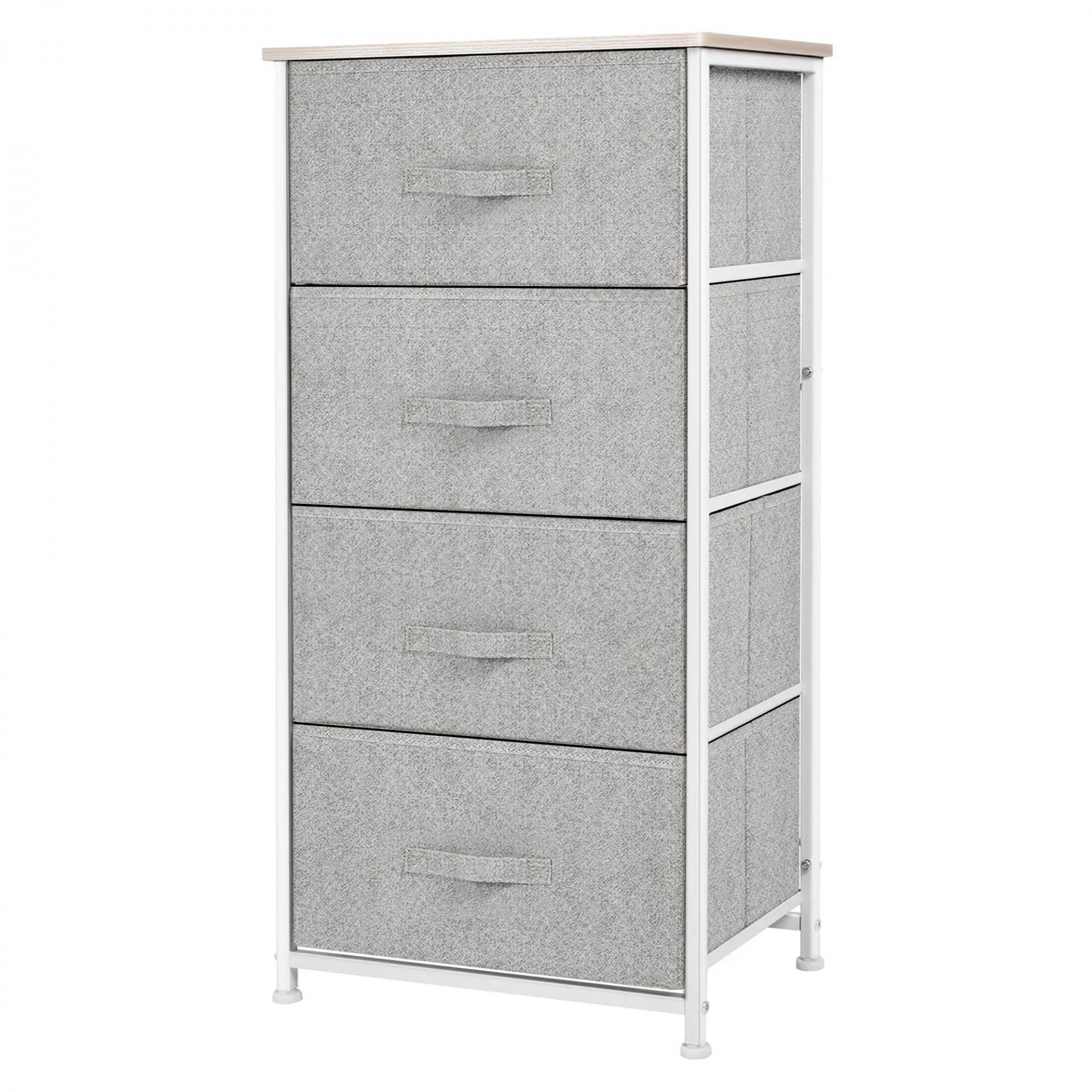 Cómoda con 4 Cajones de Tela, Cómoda para Dormitorio, Marco de Acero, Cajonera para Salón, Oficina, Vestidor, Gris