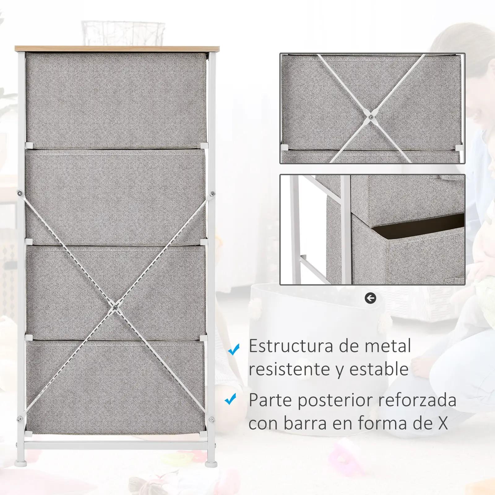 CON 4 CAJONES: Esta cómoda moderna incluye 4 cajones de tejido no tejido (TNT) que ofrecen espacio para guardar camisetas, calcetines, juguetes y más. Ideal para mantener tu ropa y accesorios organizados y protegidos del polvo