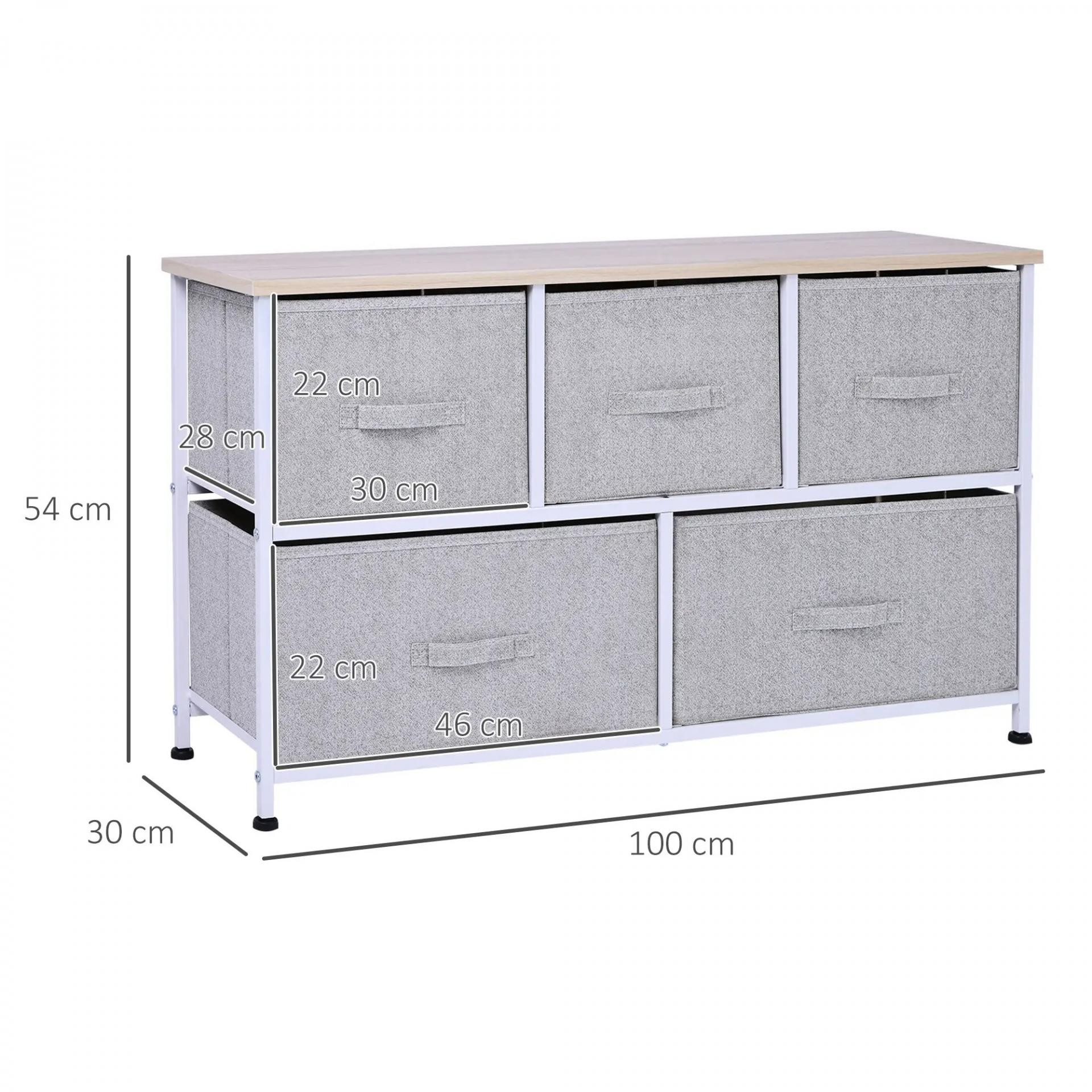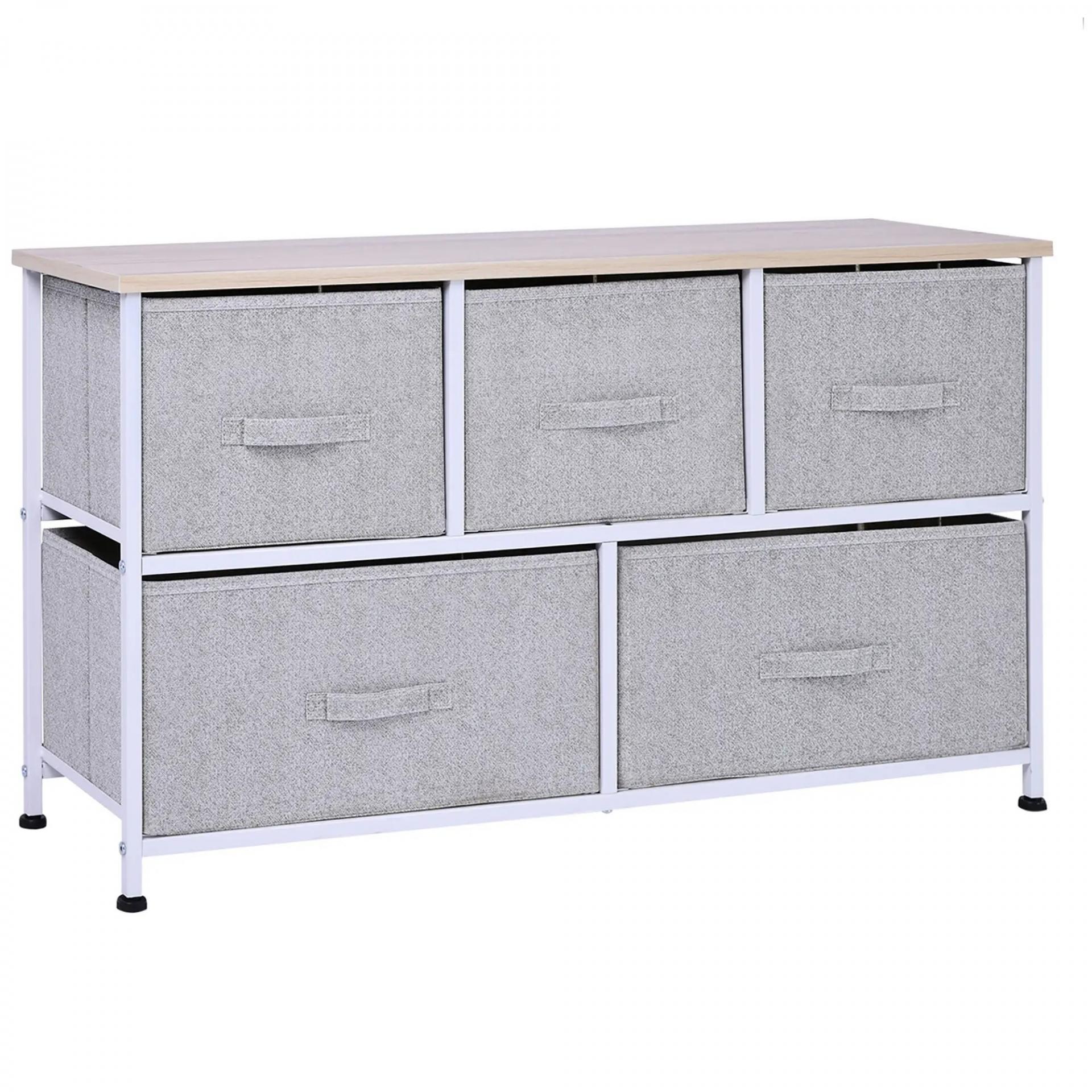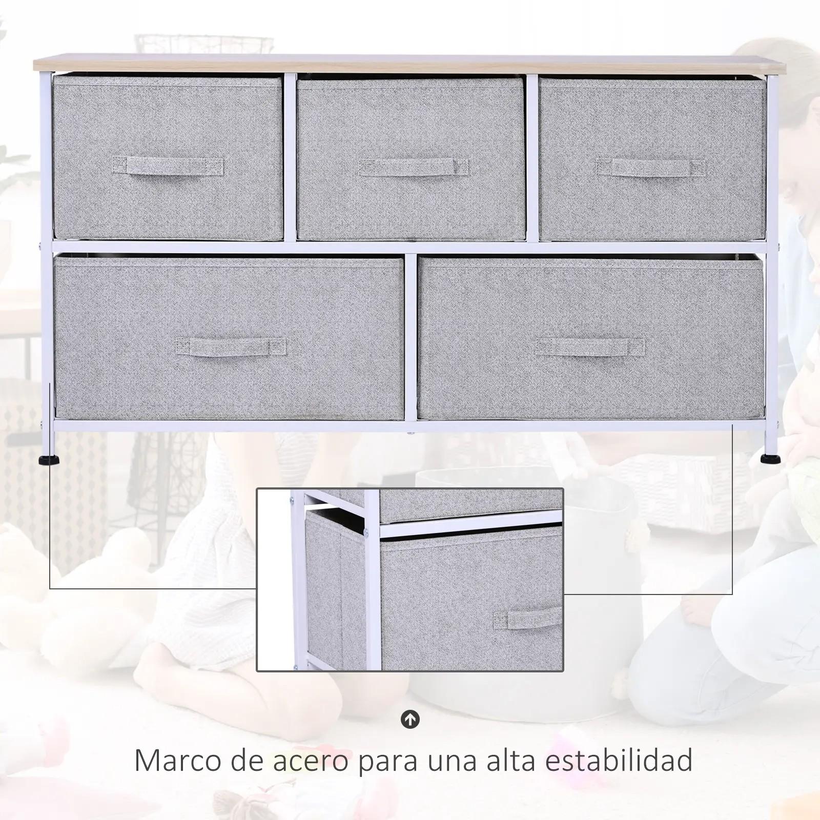 Cómoda con 5 Cajones de Tela Cómoda para Dormitorio Marco Metálico 100x30x54 cm Gris