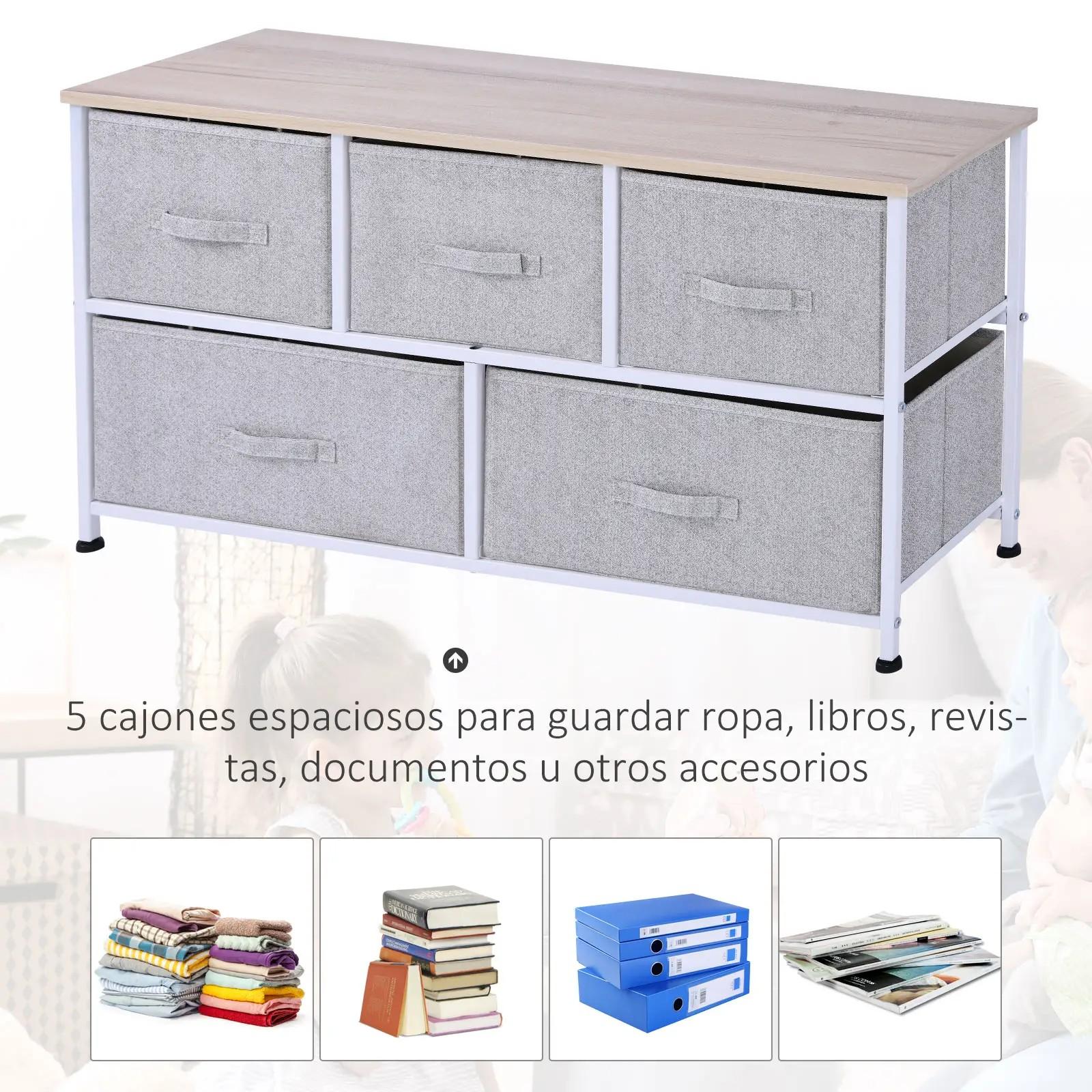 - AMPLIO ESPACIO: Esta cajonera de tela ofrece una balda superior para decoraciones y 5 cajones de dos tamaños. La cómoda de 5 cajones permite ordenar juguetes, ropa o accesorios y mantener cualquier habitación u oficina siempre en perfecto orden
