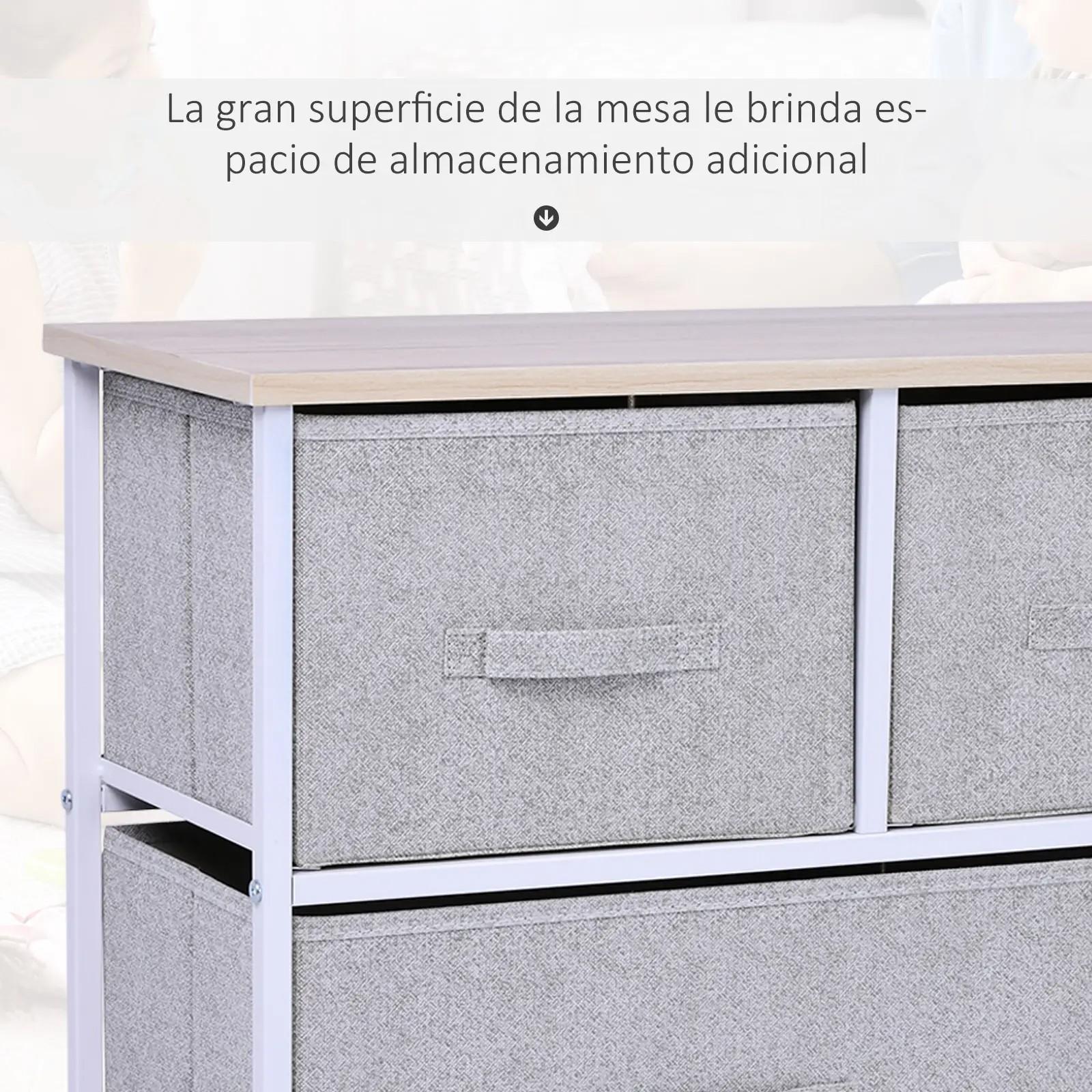 DISEÑO ELEGANTE: Esta cómoda de tela de HOMCOM combina cajones de tela, tapa de melamina y estructura de metal en un diseño moderno y ligero. Este mueble organizador se integra fácilmente en dormitorios, salones o pasillos gracias a su estilo versátil