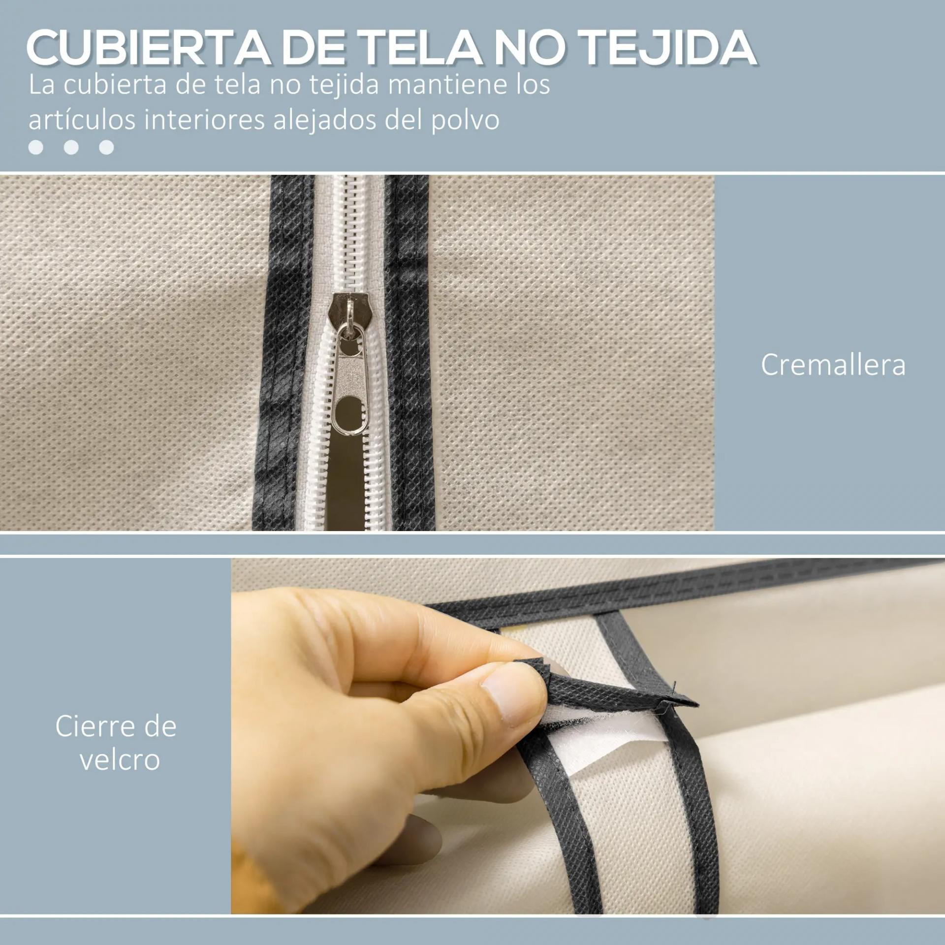 Armario de Tela Plegable Ropero Portátil con 8 Estantes y 2 Barras de Colgar para Dormitorio 125x43x162,5 cm Crema