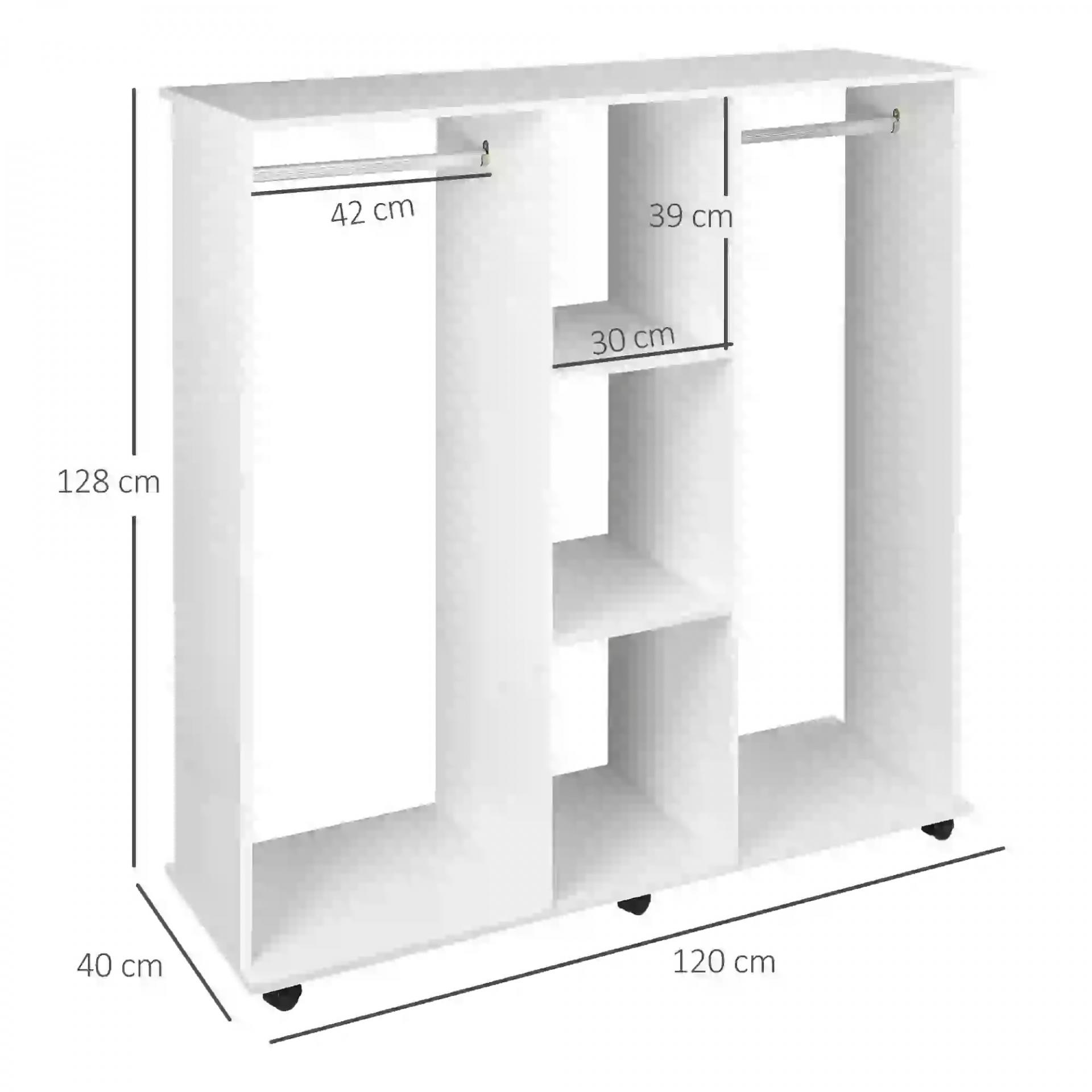 Armario para Ropa con Barra Estantes Abiertos Organizador para Colgar Ropa de Dormitorio 120x40x128 cm Blanco