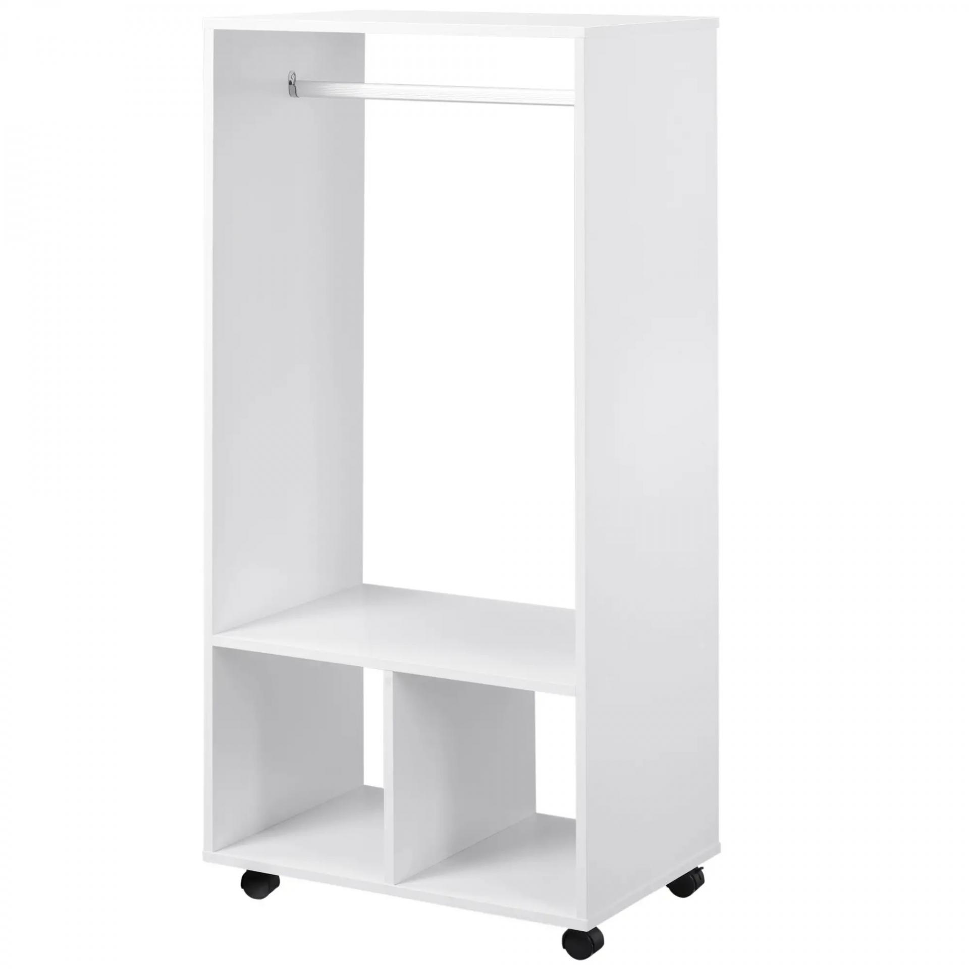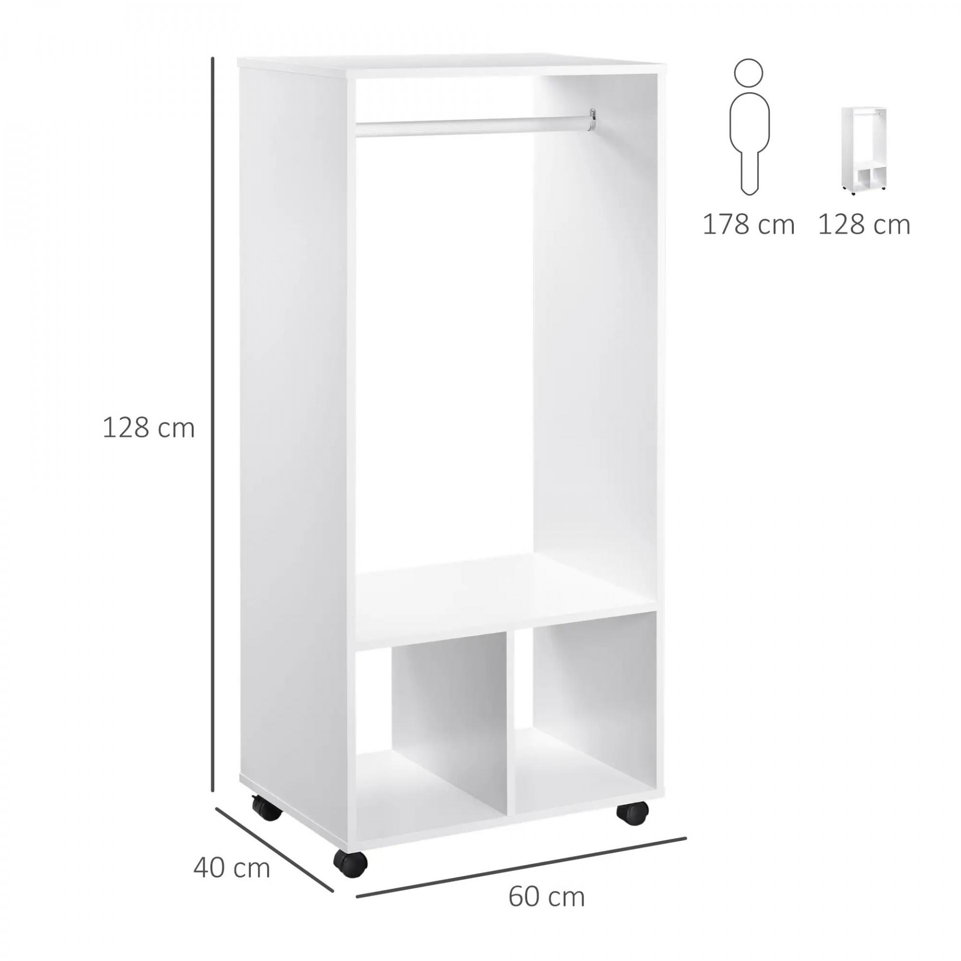 Armario Abierto con Ruedas Barra y Estantes para tener Ropa Colgada y Doblada 60x40x128 cm Blanco