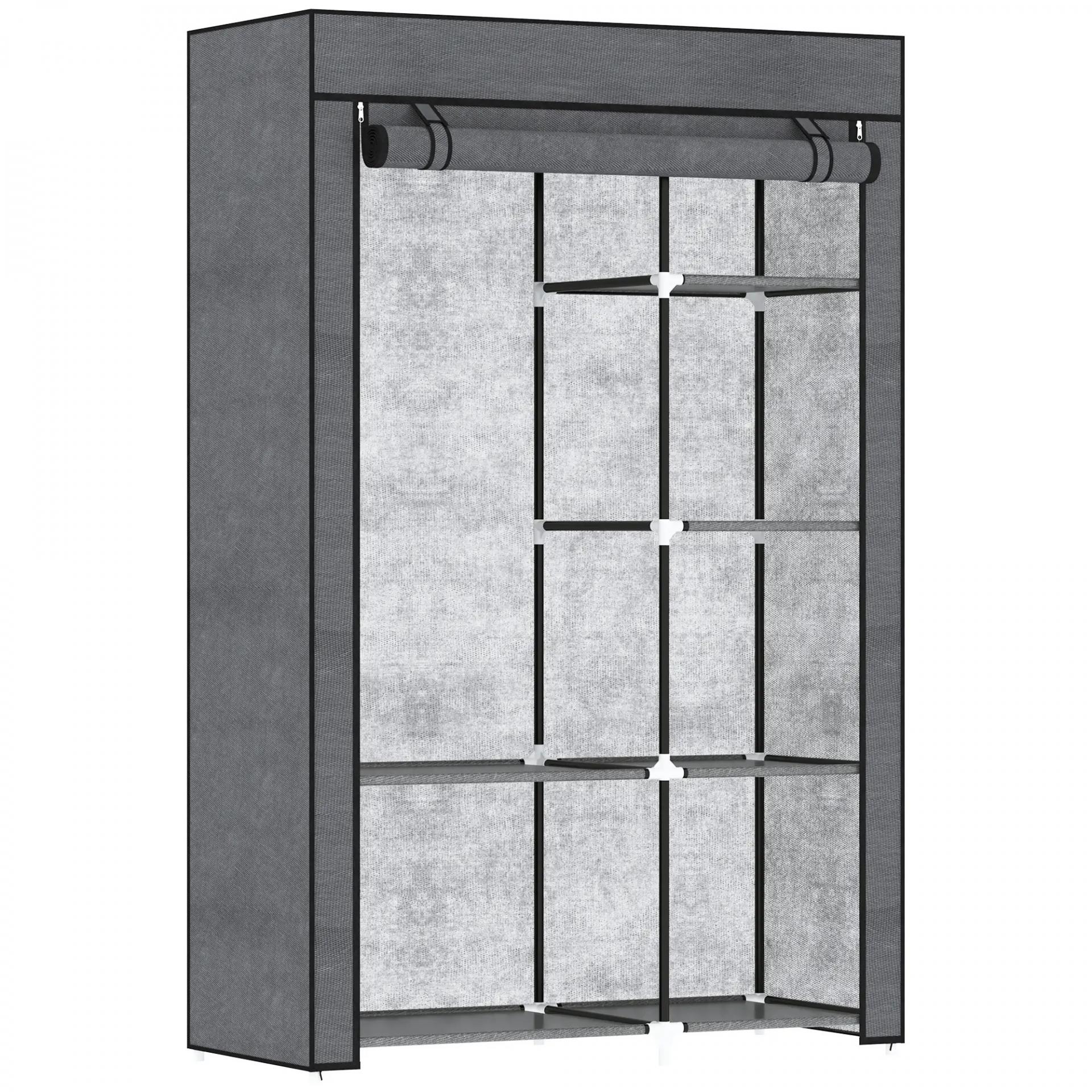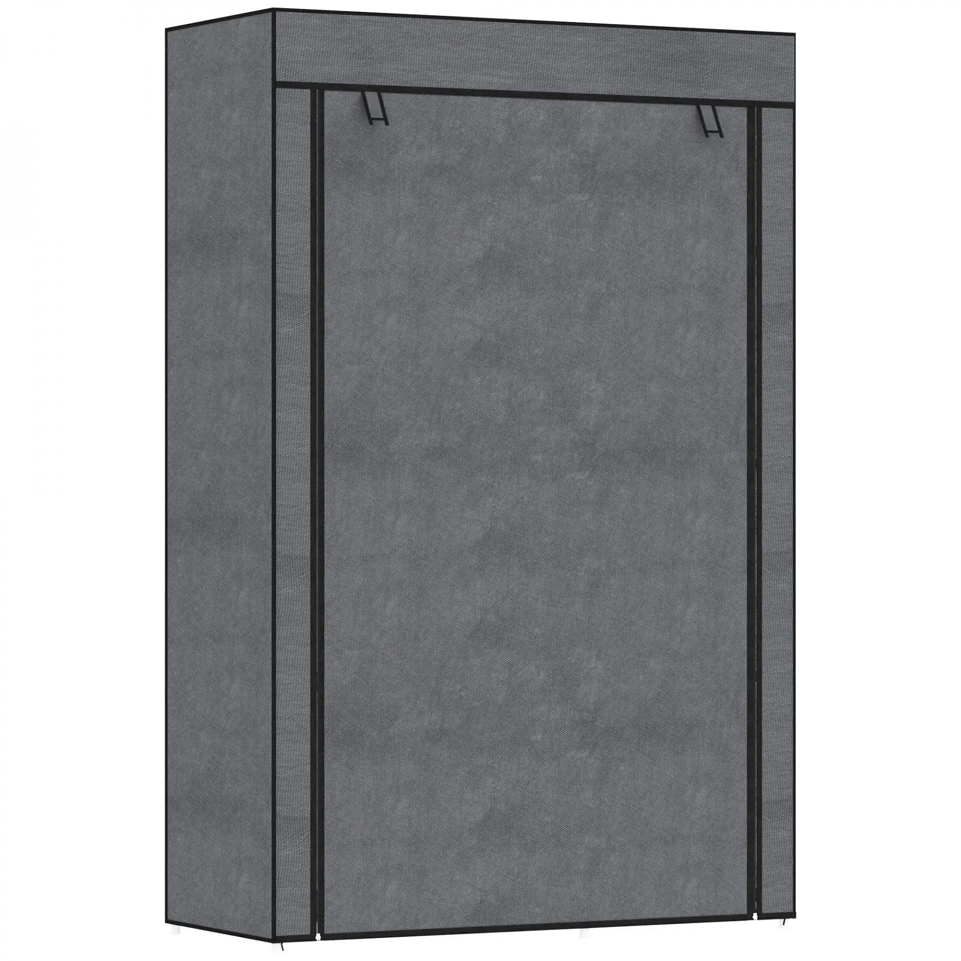 Armario de Tela Plegable Ropero Portátil con 6 Estantes y 1 Barra de Colgar para Dormitorio 103x43x162,5cm Gris Oscuro