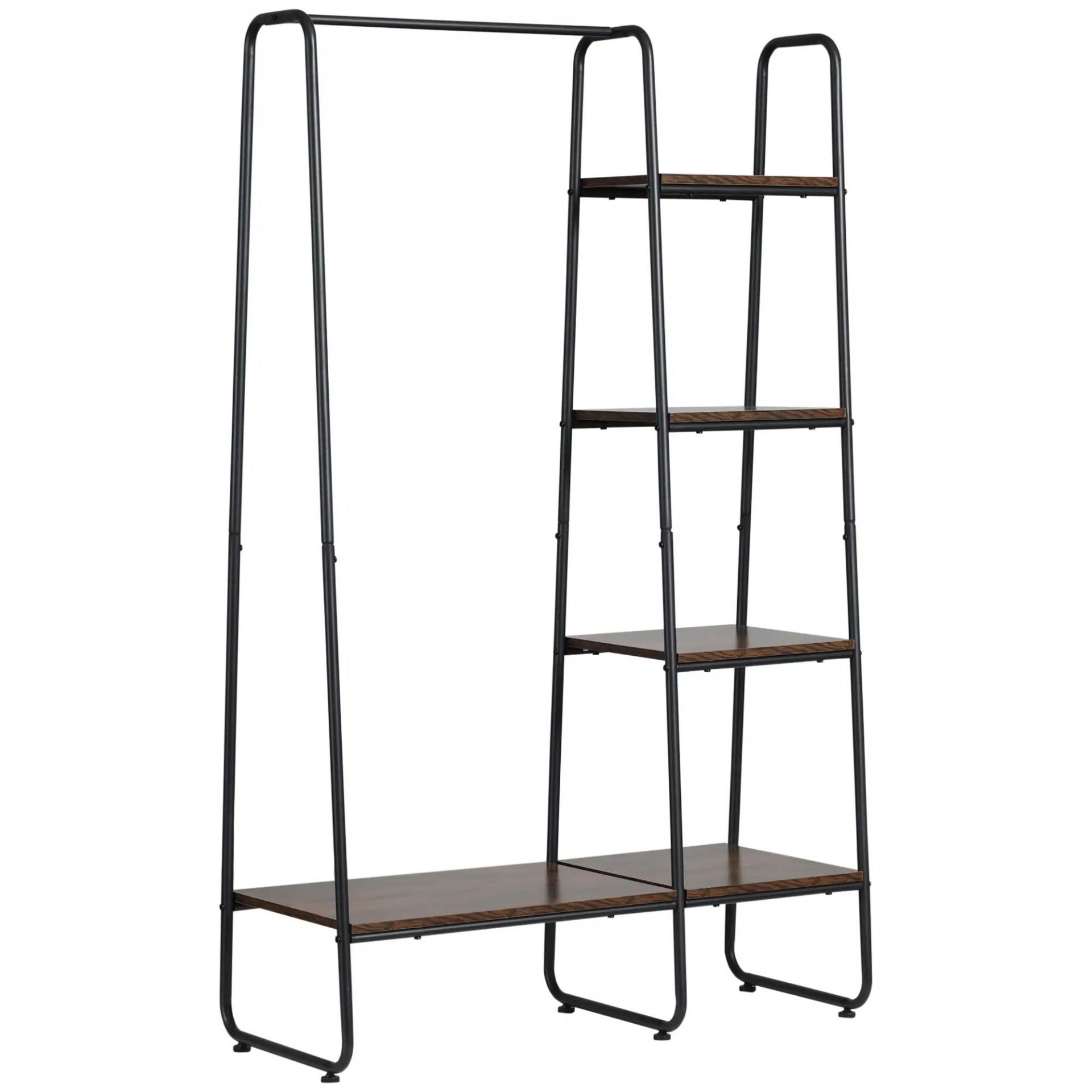 Perchero de Ropa de Madera con 4 Estantes y Barra para Colgar para Dormitorio Salón 101x39x160 cm Marrón Rústico