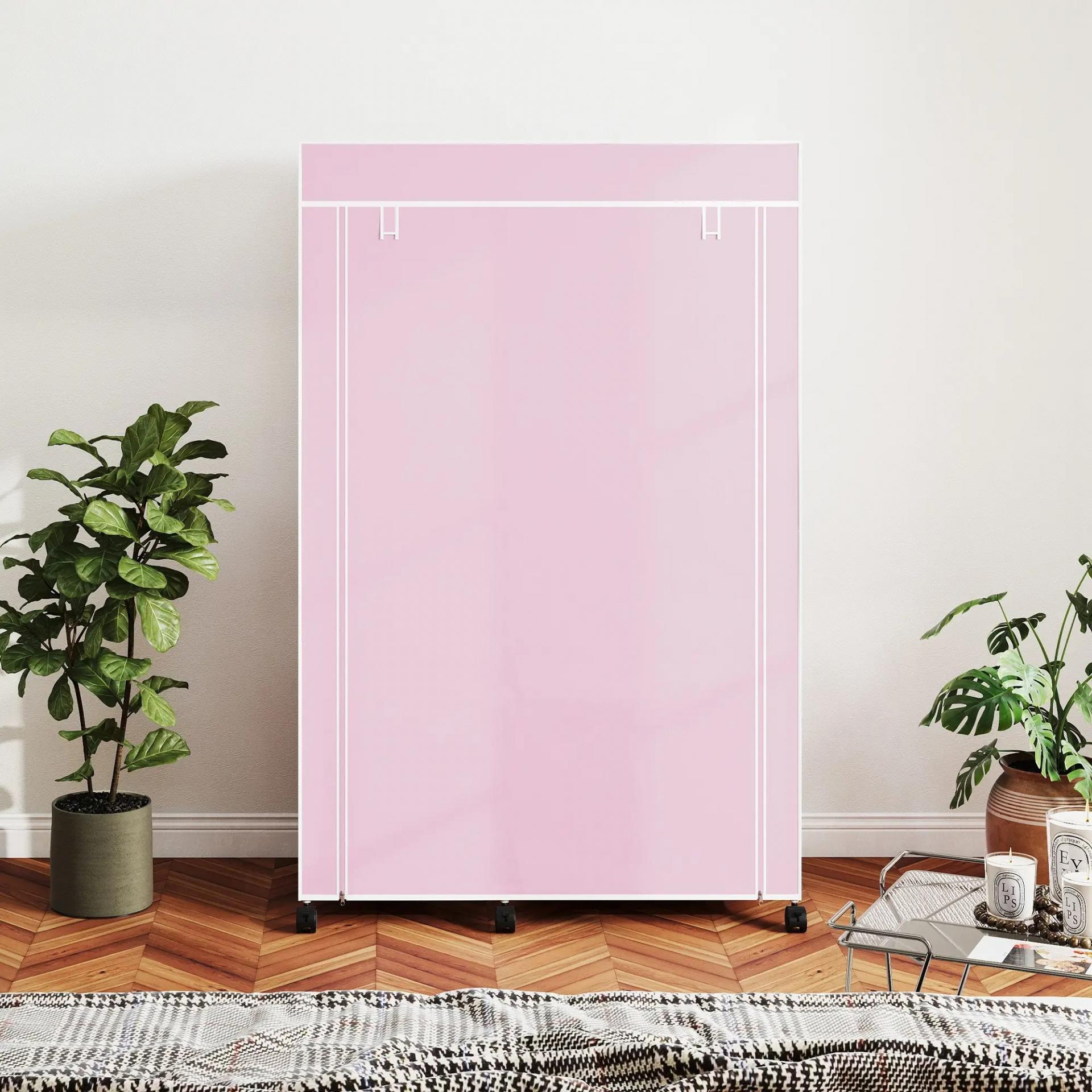 Armario de Tela con Ruedas Ropero Portátil con 6 Estantes y 1 Barra de Colgar para Dormitorio 103x43x162,5cm Rosa