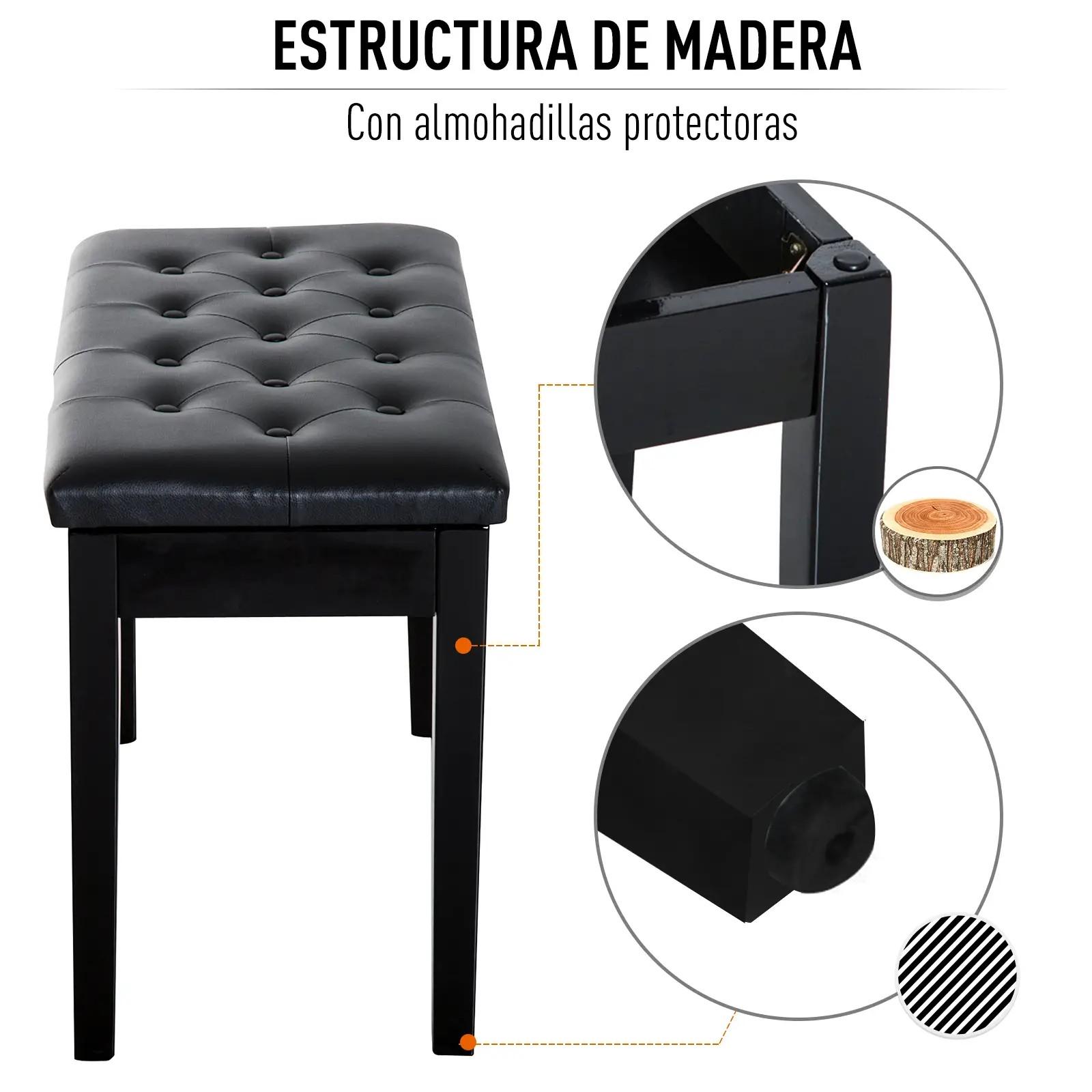 - ESTRUCTURA RESISTENTE: Fabricado con estructura y patas de madera de caucho, este banco de piano es resistente e ideal para un uso prolongado. Soporta una carga máxima de hasta 200 kg