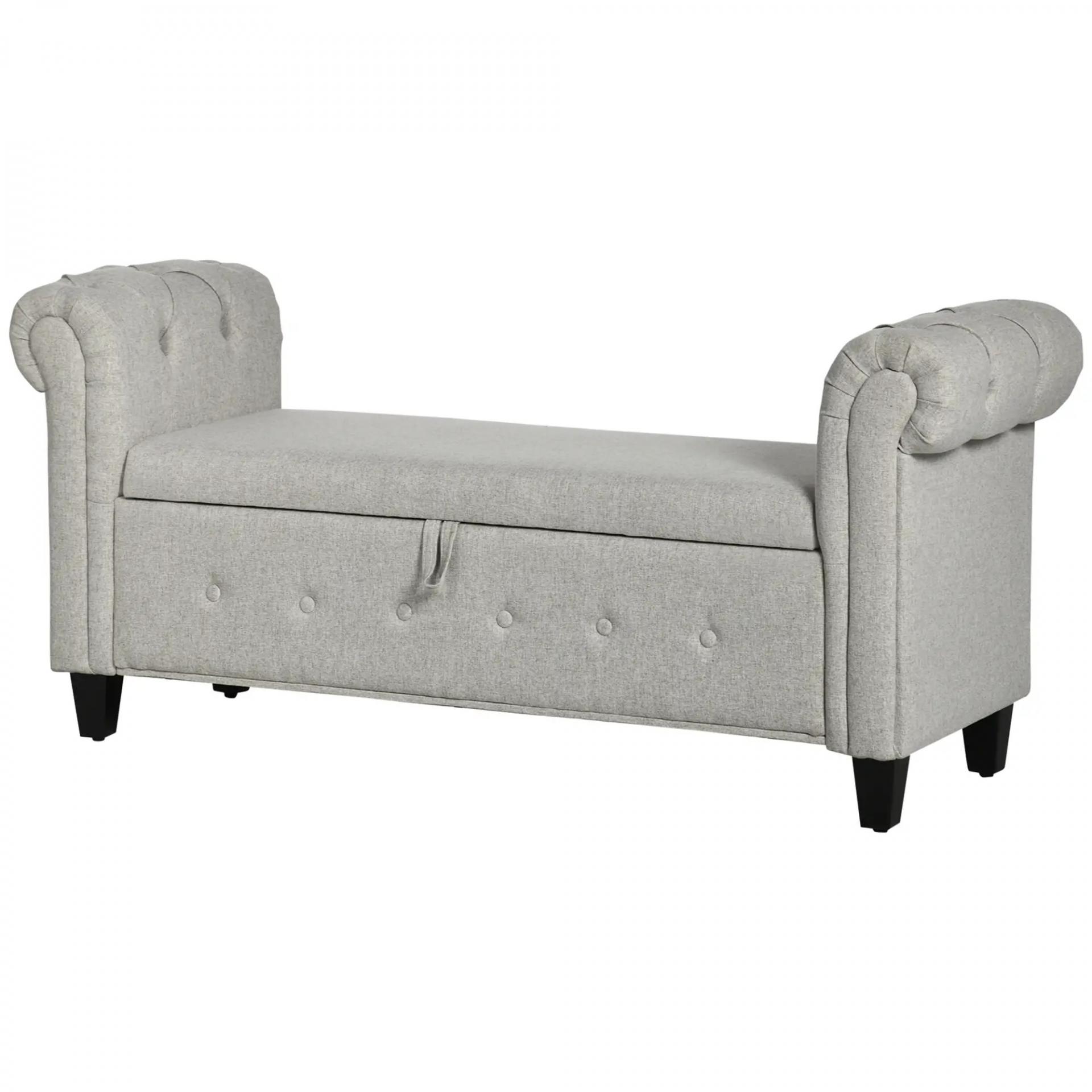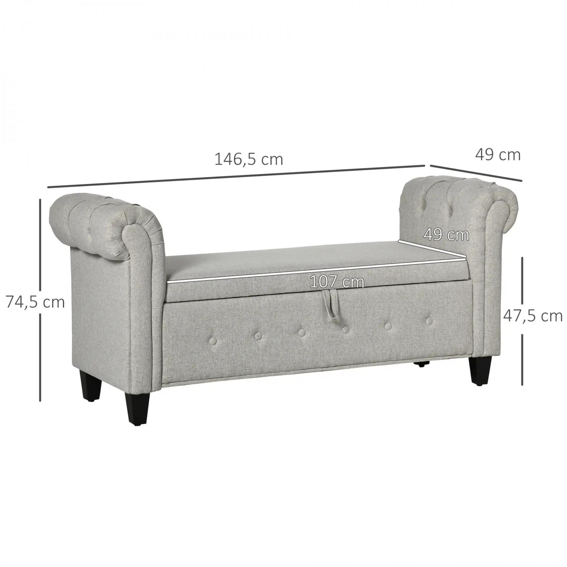 Banqueta Pie de Cama con Almacenamiento y Reposabrazos para Dormitorio Salón Pasillo 146,5x49x74,5 cm Gris Claro