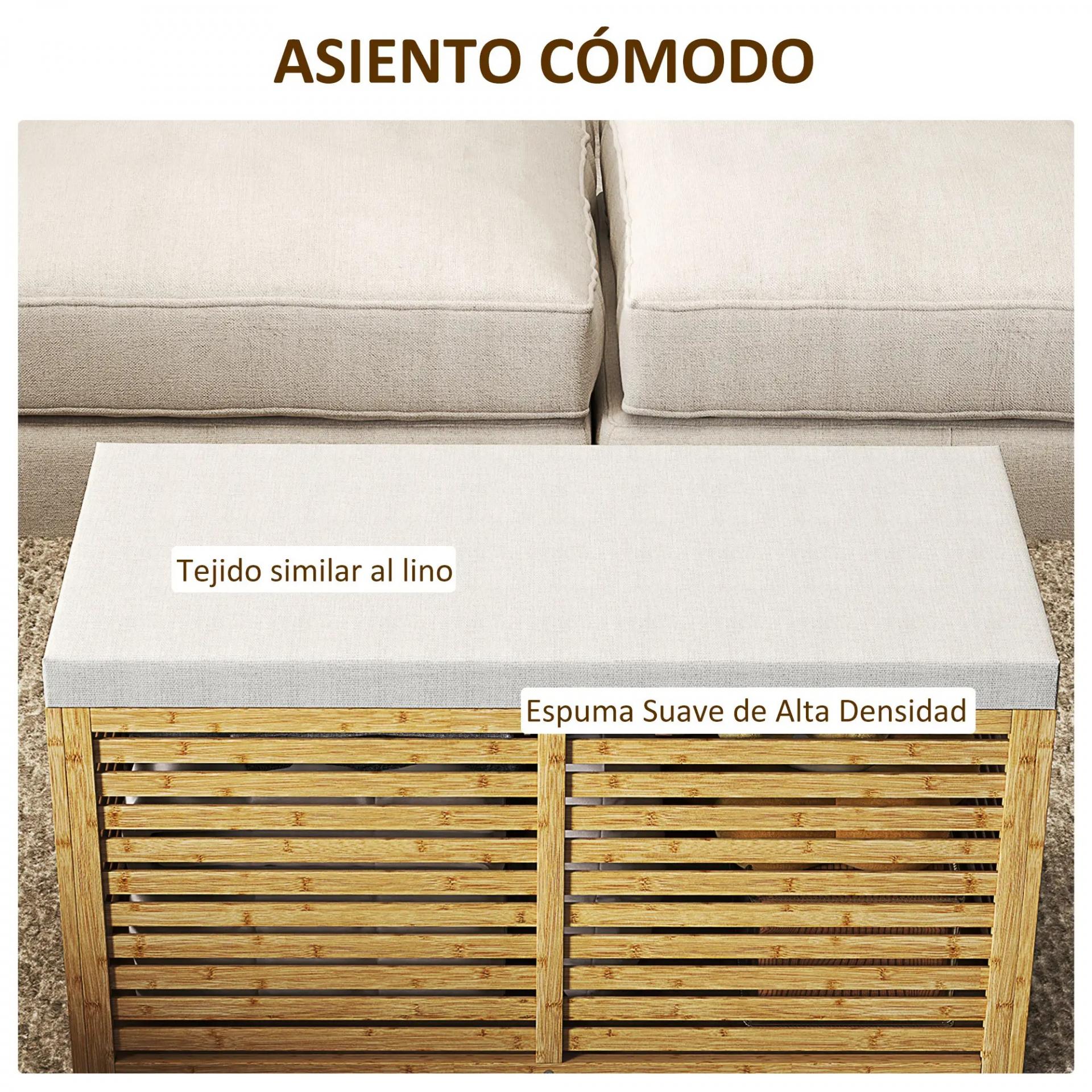 - ASIENTO CÓMODO: Relájate en este asiento, perfecto para calzarte o descansar, con su espuma de alta densidad y su tela tipo lino, suave y transpirable para una experiencia de confort único