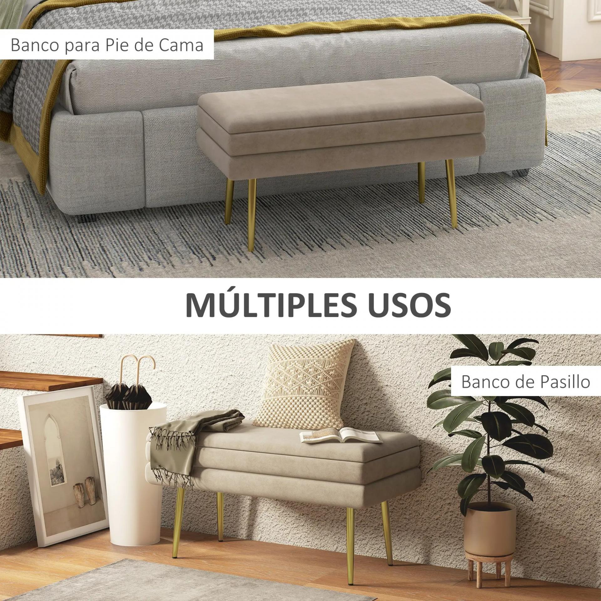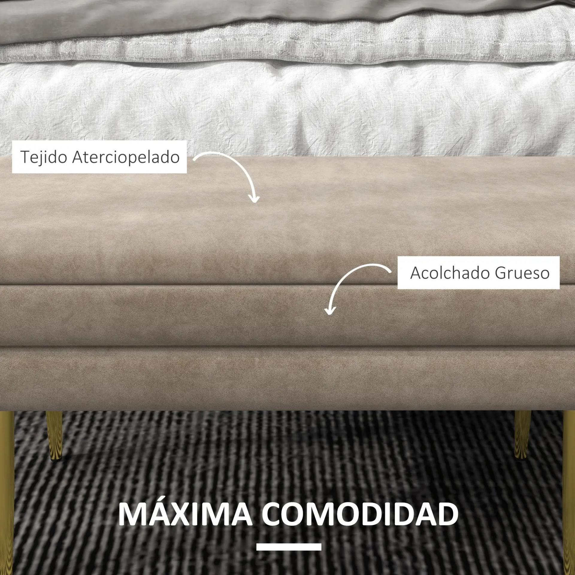Banco de Almacenaje para Dormitorio 30L Tapizado en Terciopelo Pie de Cama con Patas de Acero 79,5x37,5x43 cm Beige