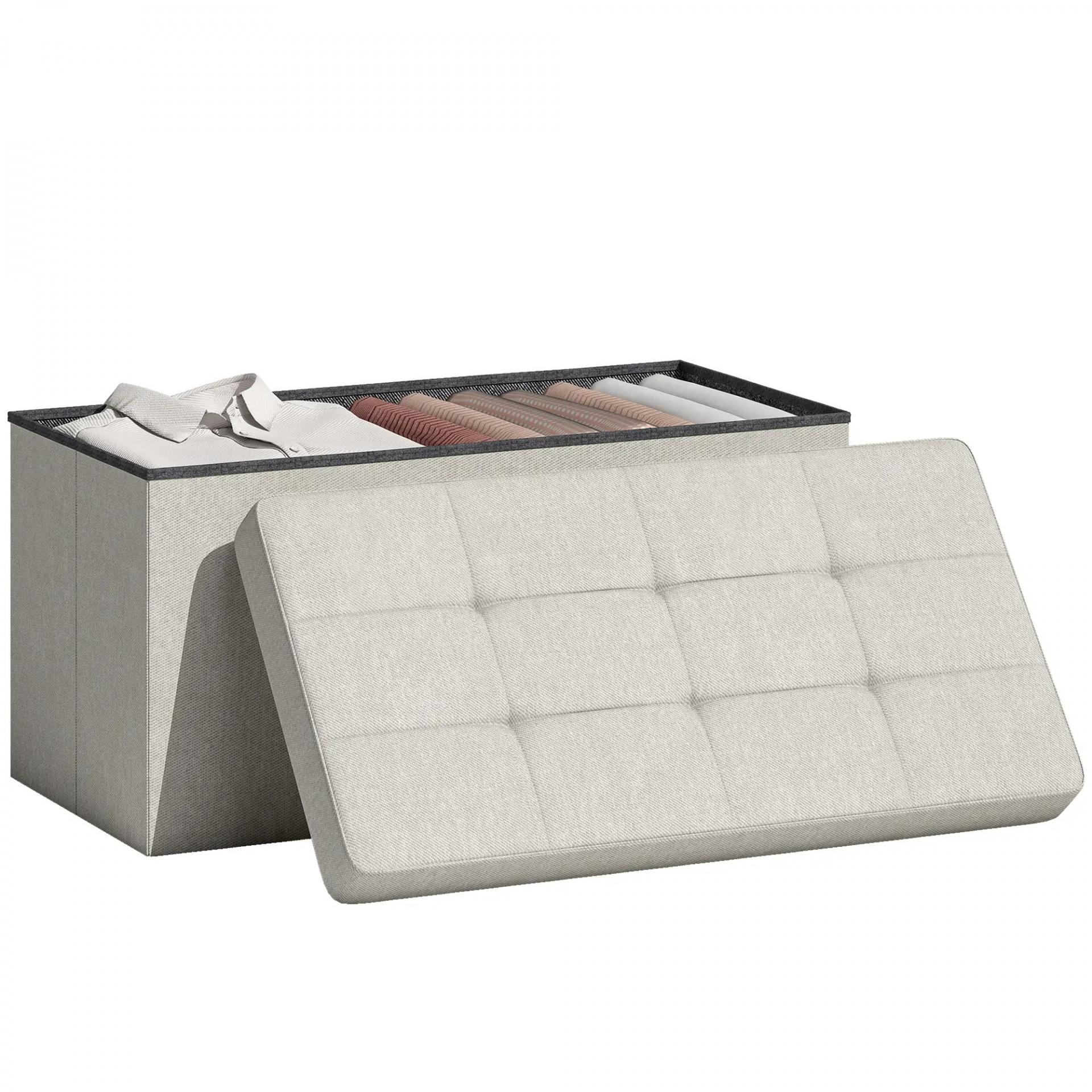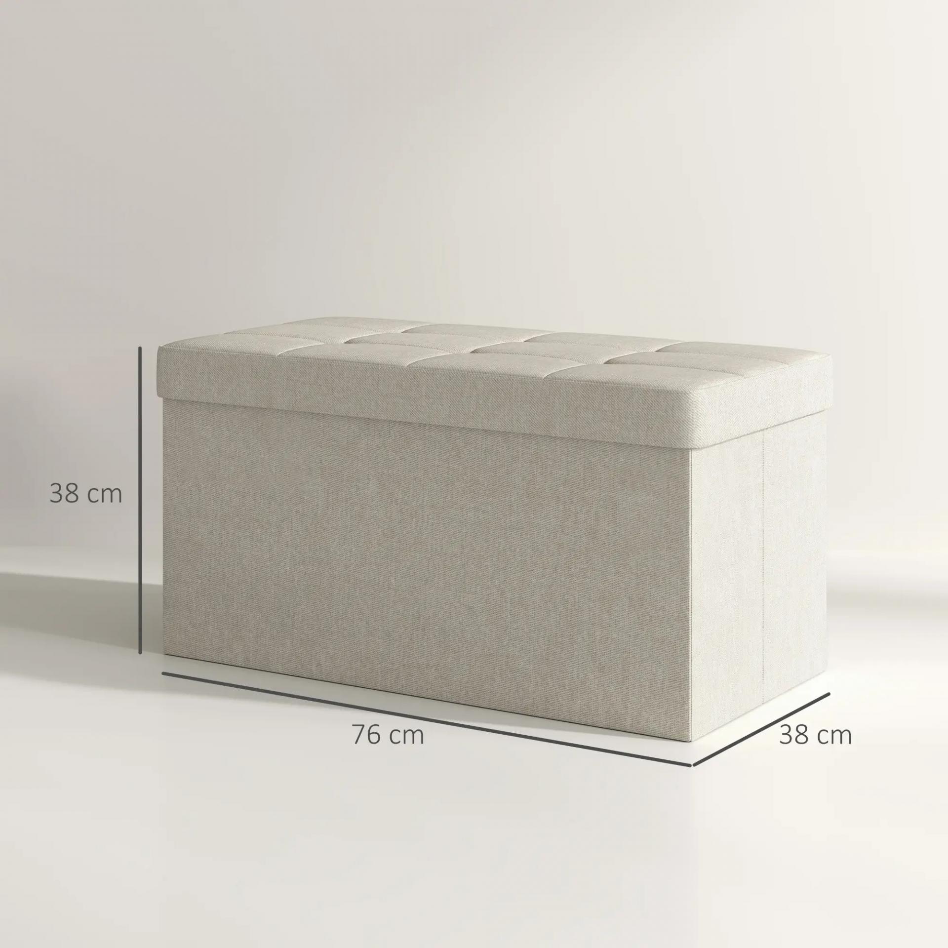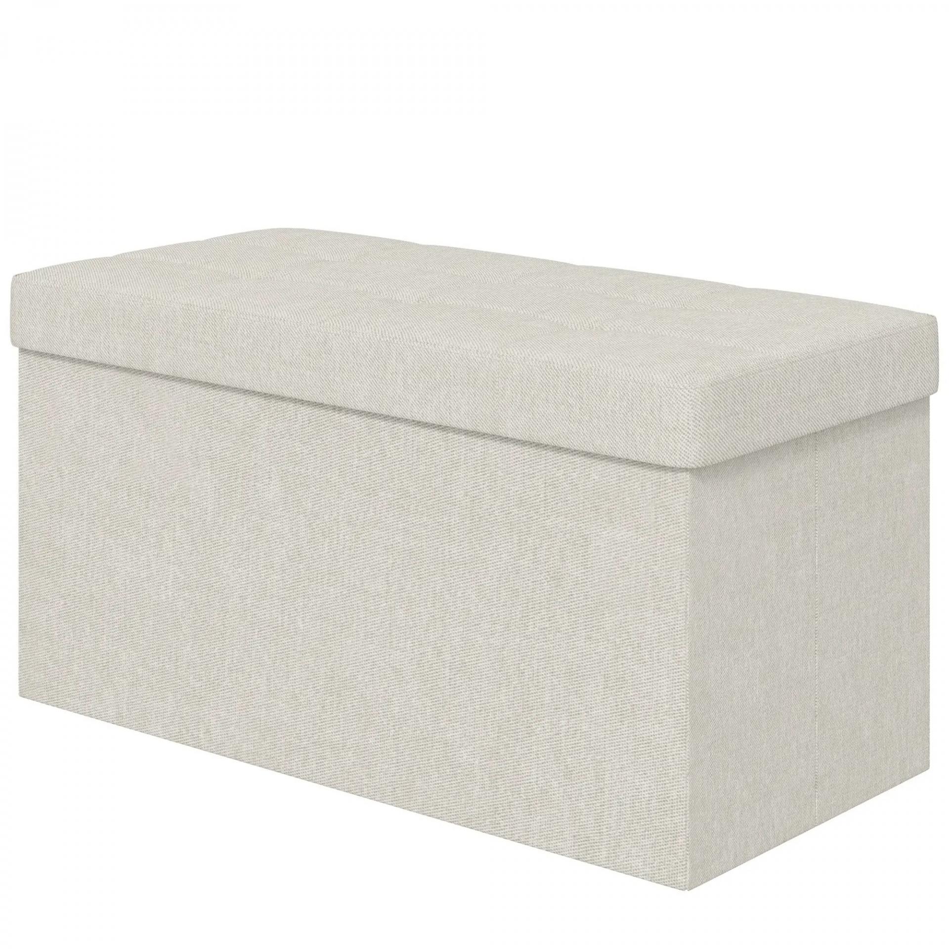Puff Almacenaje, Banco Almacenaje Plegable 84 L 76x38x38 cm Tapizado en Lino Sintético Baúl de Almacenamiento Crema