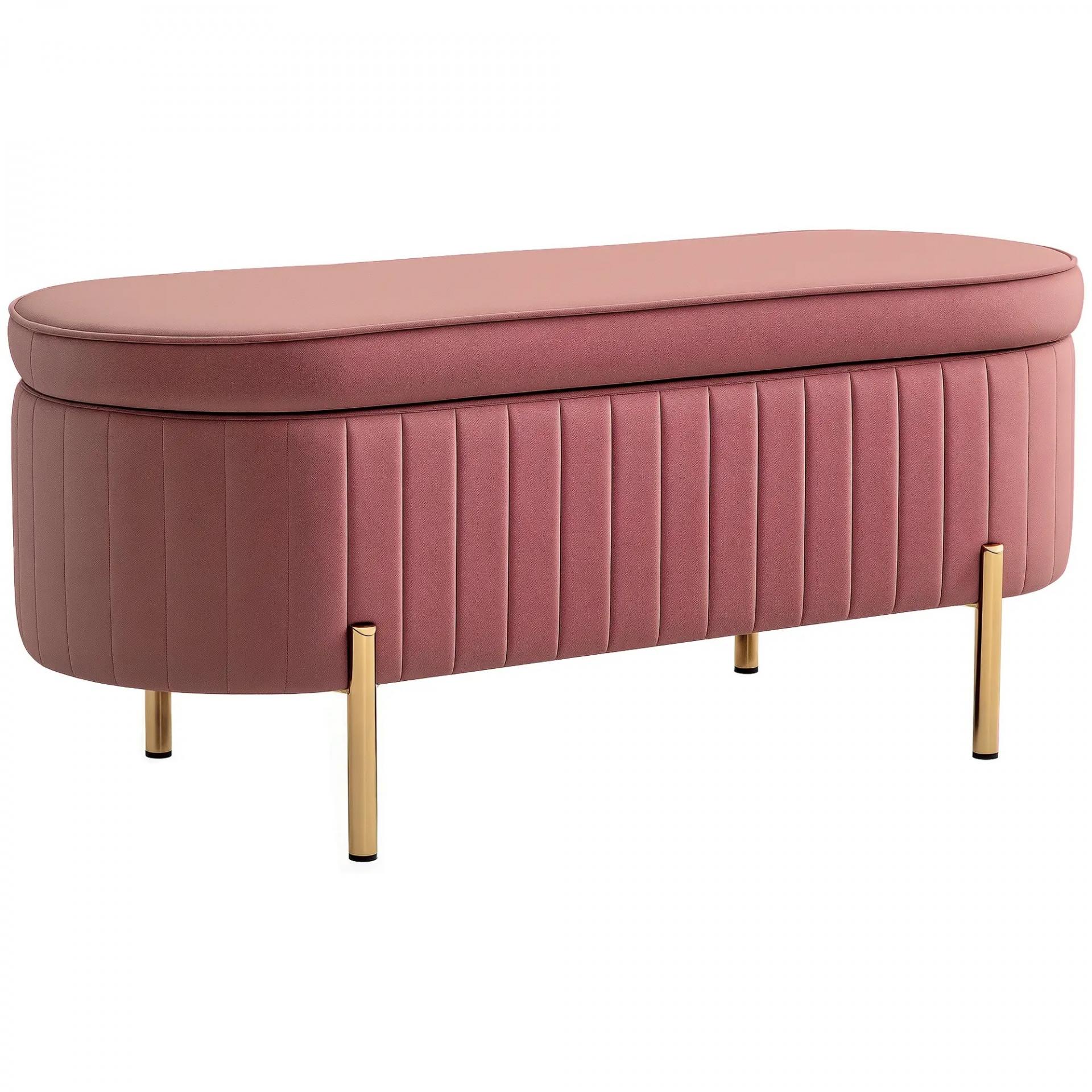 Banco para Pie de Cama con Almacenaje Tapizado en Terciopelo Patas Doradas y Diseño Elegante Ovalado 108x44x43,5cm Rosa