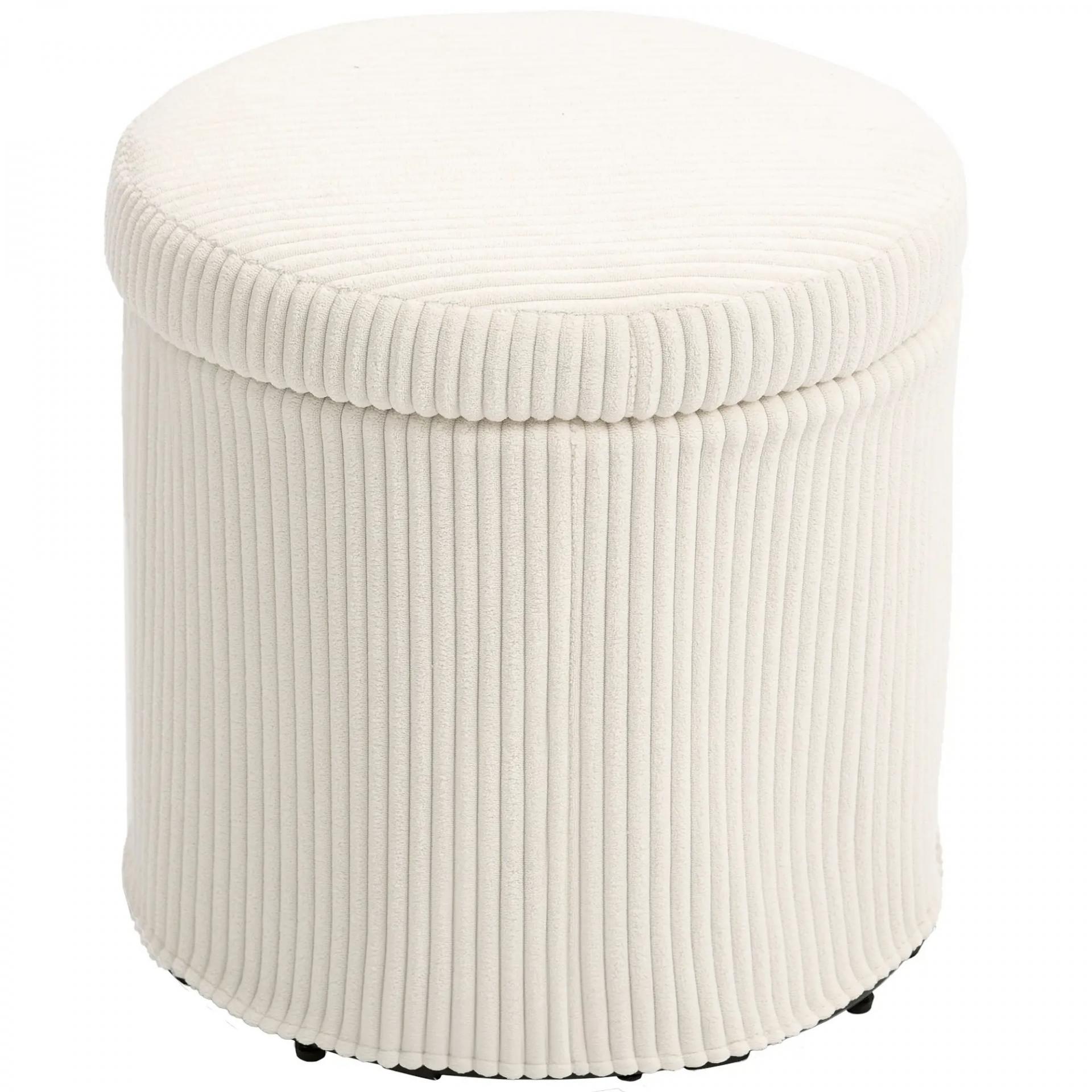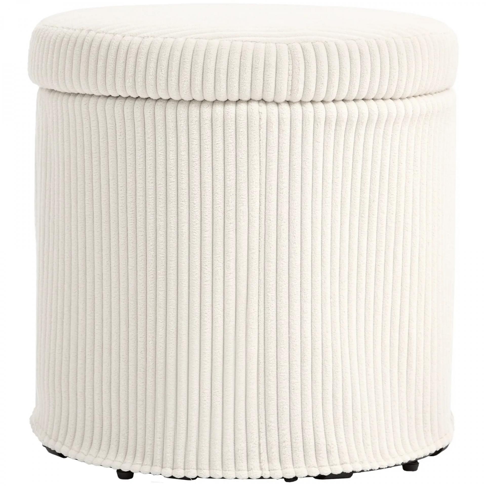 Puff con Almacenaje Redondo Tapizado en Pana con Estructura de Acero Estable y Acolchado Suave Ø40x41 cm Beige