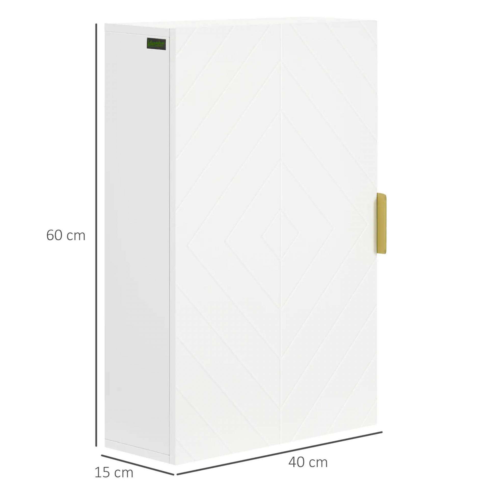 Mueble para Baño Suspendido con 1 Asa de Acero y Estantes Ajustables Estilo Moderno 40x15x60 cm Blanco