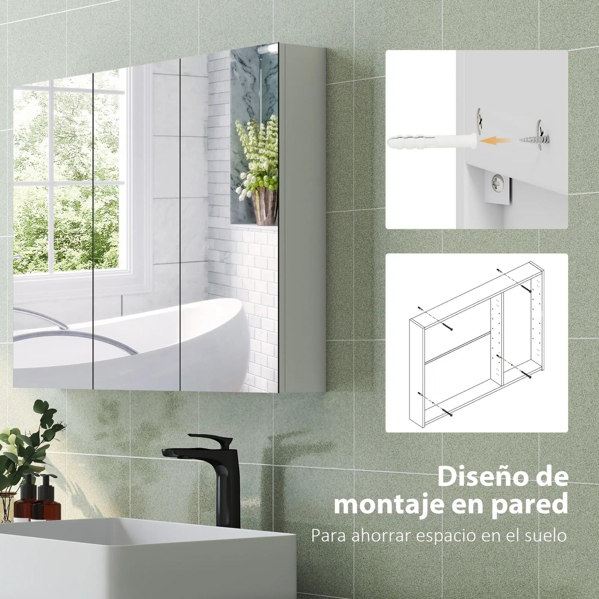 - TRIPLE ESPEJO: Equipado con tres puertas con espejo, este armario de pared para baño proporciona una vista amplia y clara, ideal para maquillarte, tu rutina de higiene y los arreglos del día a día