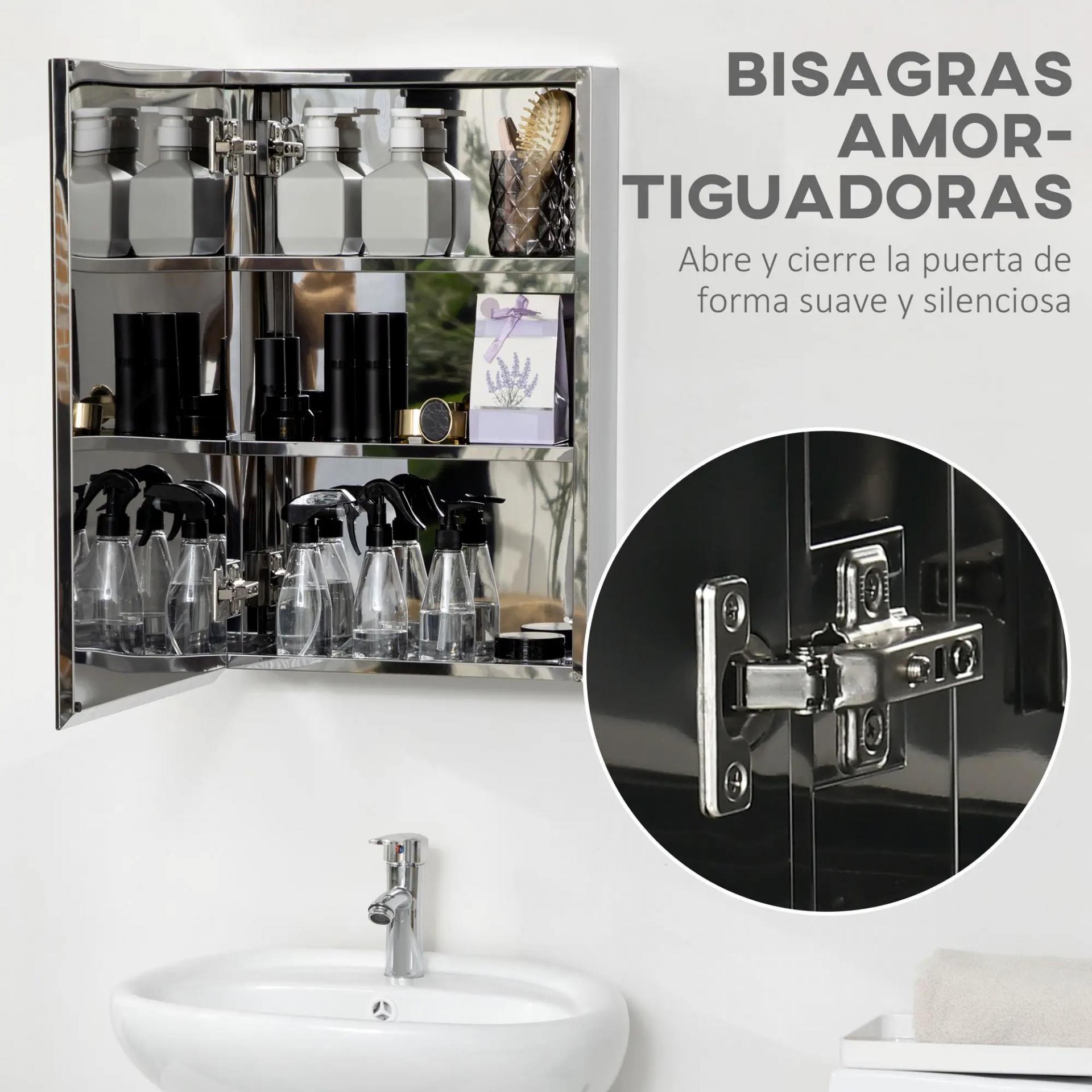 Armario de Baño con Espejo Armario de Pared con 3 Estantes de Almacenamiento para Ducha Aseo 39x12x60 cm Plata