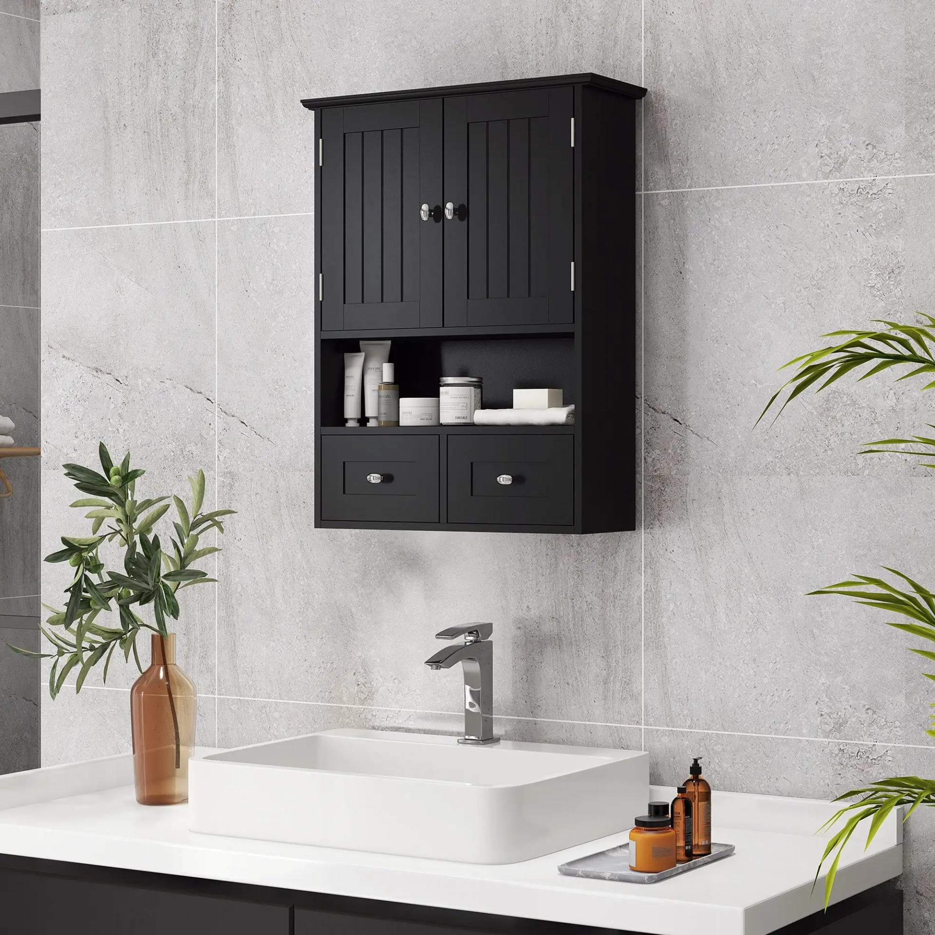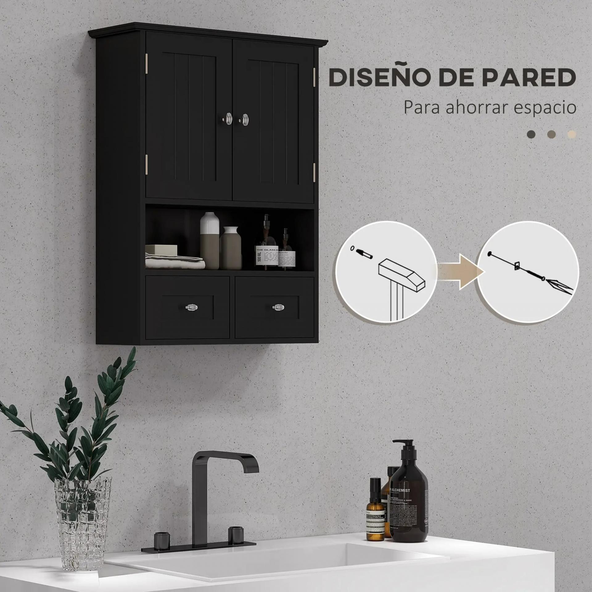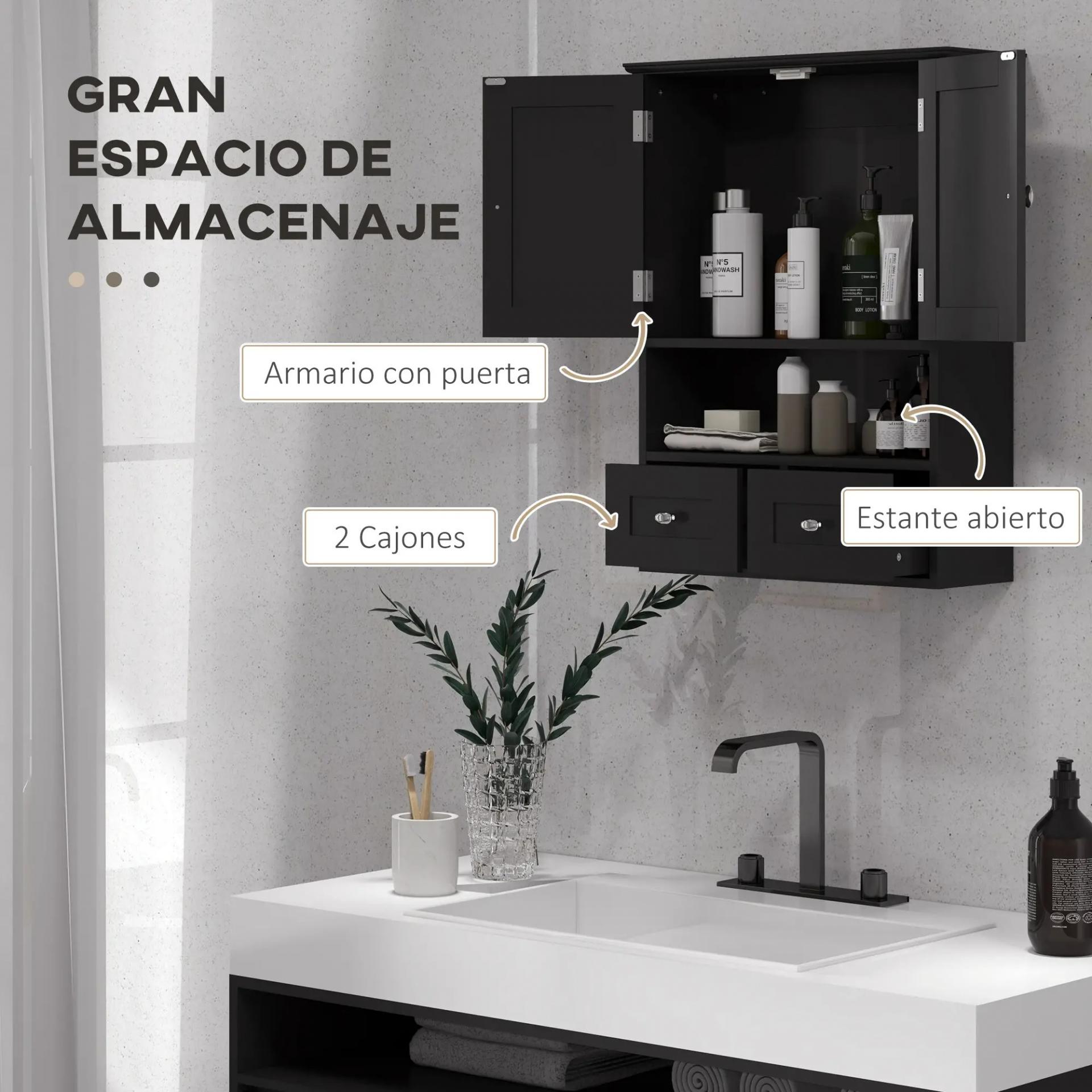 Armario de Baño de Pared Armario Colgante Mueble Suspendido de Baño con 2 Puertas y 2 Cajones 50,8x17,8x66 cm Negro