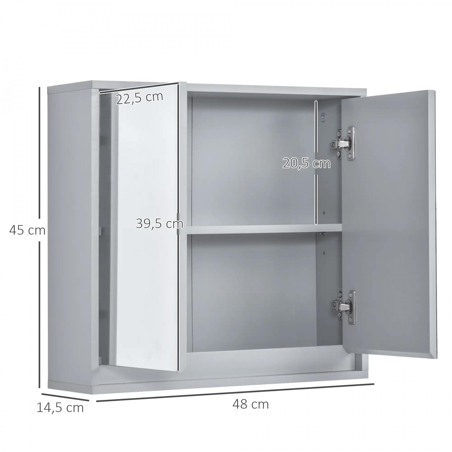 Armario de Baño con Espejo con 2 Puertas y Estante Ajustable Mueble Colgante de Baño para Aseo Estilo Moderno 48x14,5x45 cm Gris