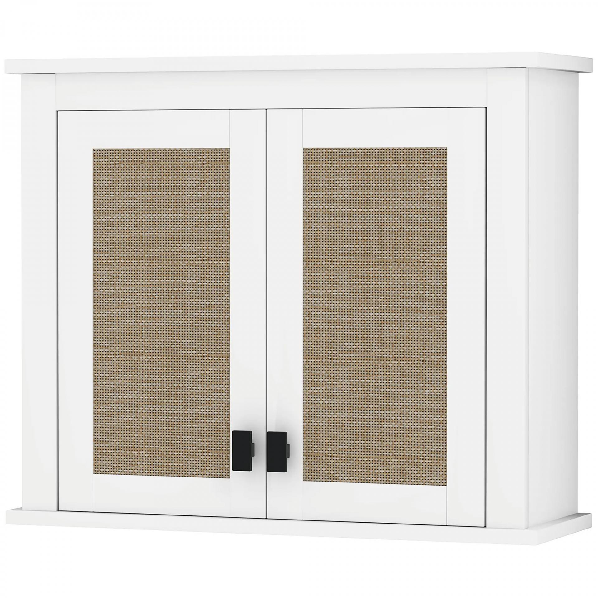 Armario de Pared para Baño Mueble de Baño Suspendido con 2 Puertas de Ratán PE Estante Ajustable 60x19,5x49,4 cm Blanco