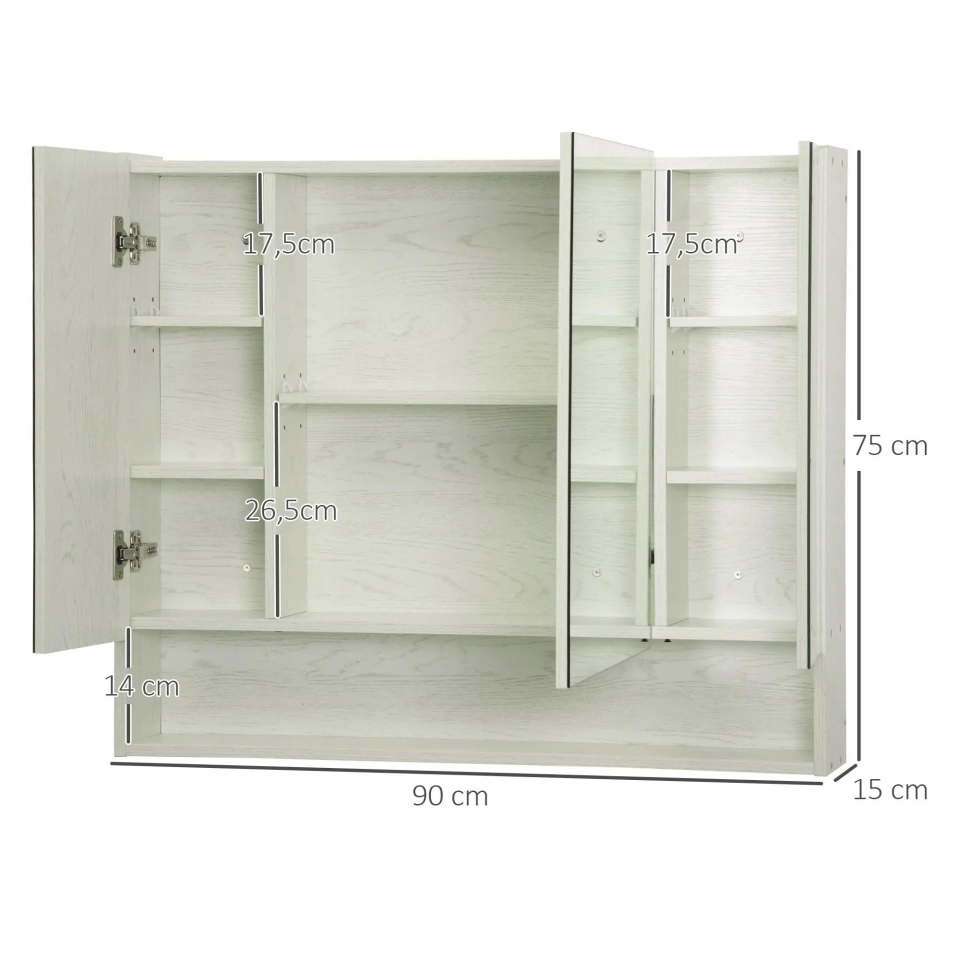 Armario de Baño con Espejo 3 Puertas Estante Ajustable y Compartimento 90x15x75 cm Blanco