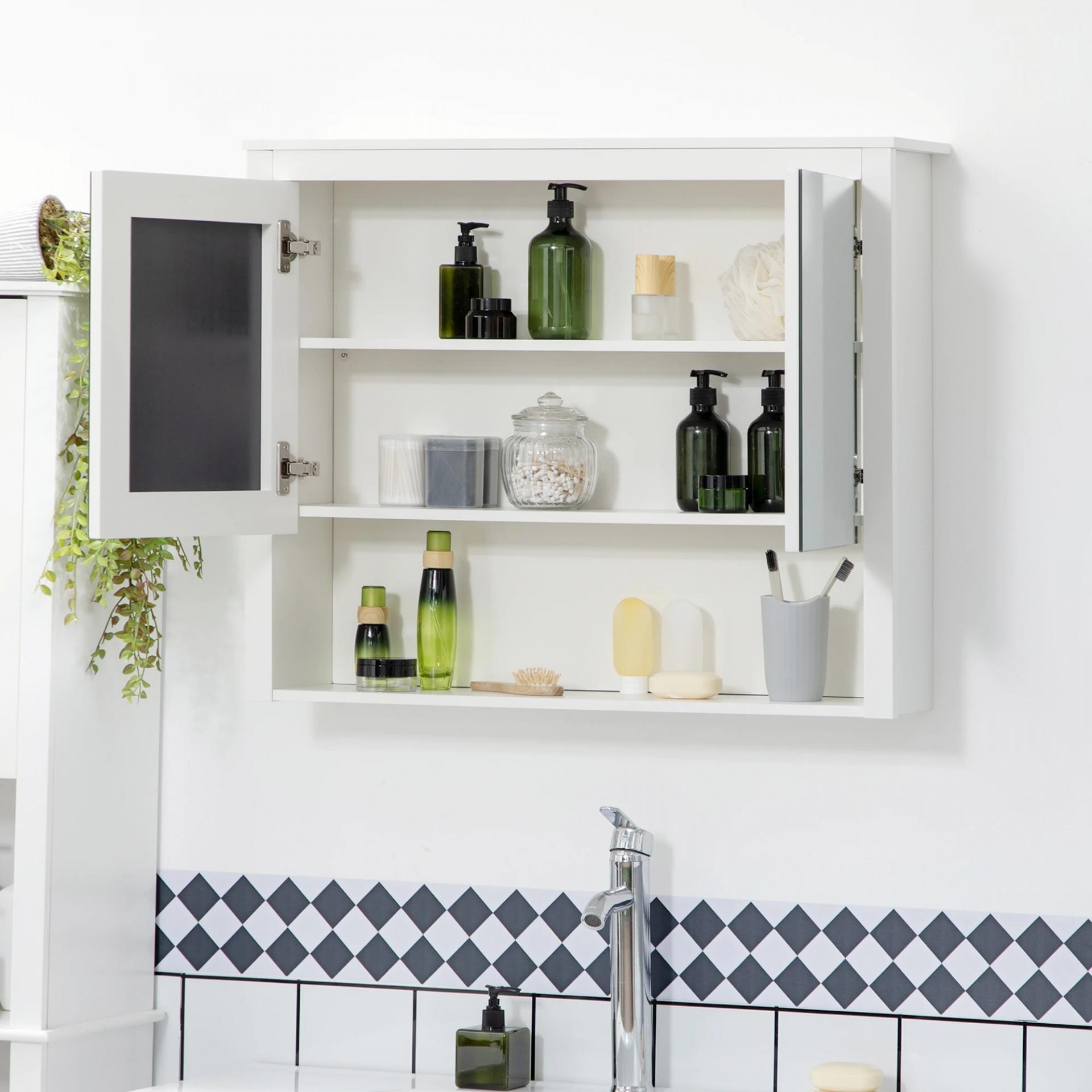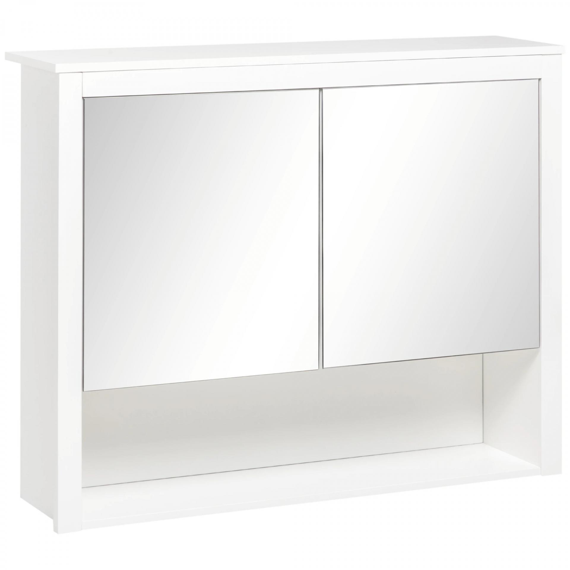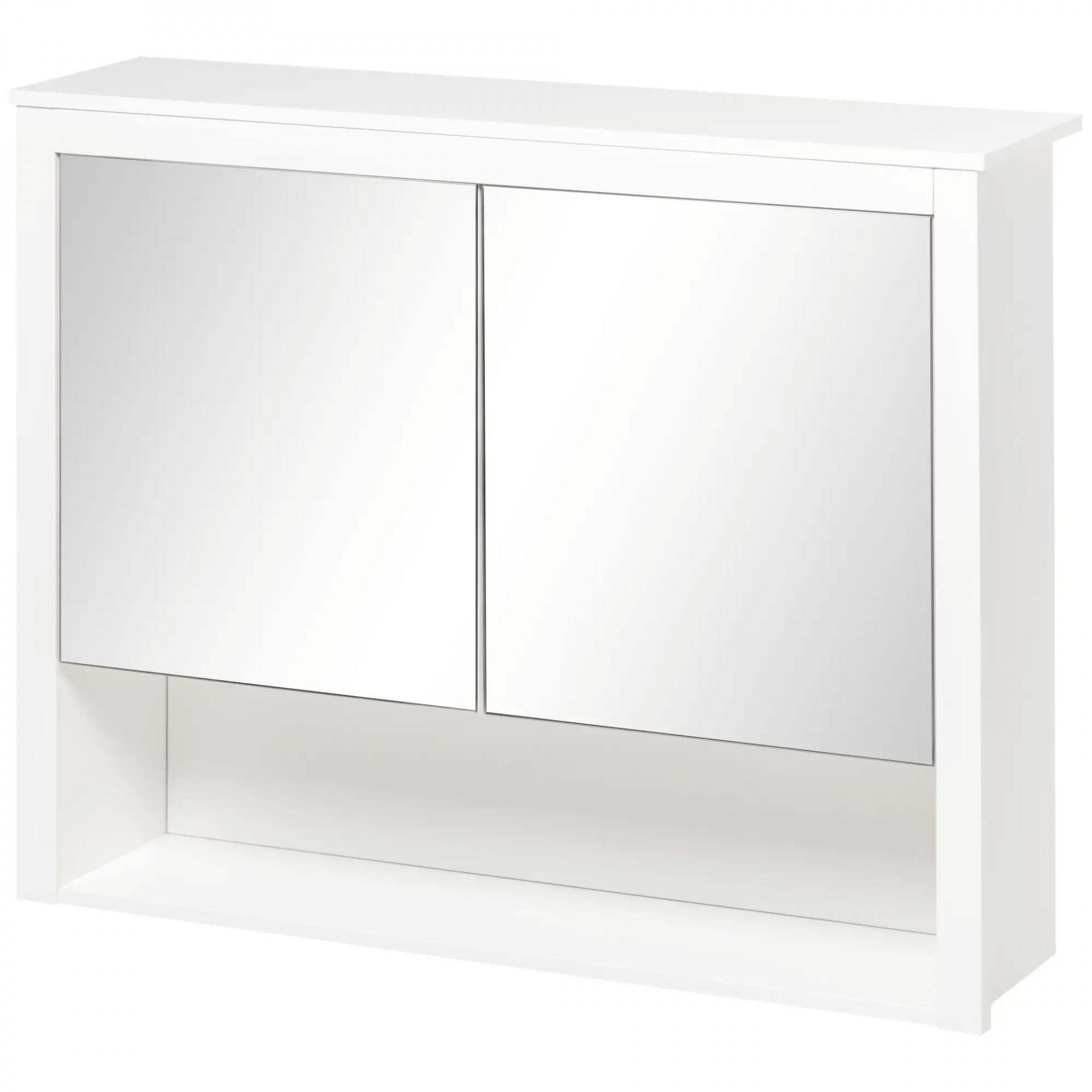 Armario de Pared con Espejo Armario Colgante con 2 Puertas de Vidrio y Estante de Almacenaje 80x20x65 cm Blanco
