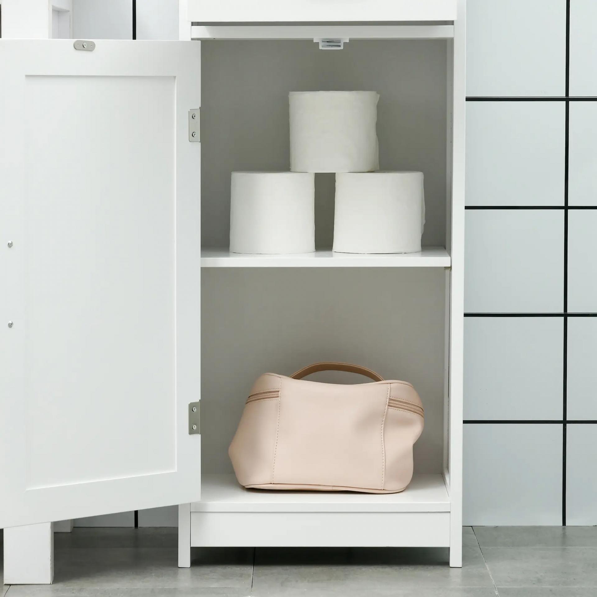 ALMACENAMIENTO EFICIENTE: Optimiza el espacio de tu baño con esta columna estrecha que ofrece estante abierto, cajón y armarios, ideal para organizar toallas y productos de higiene.