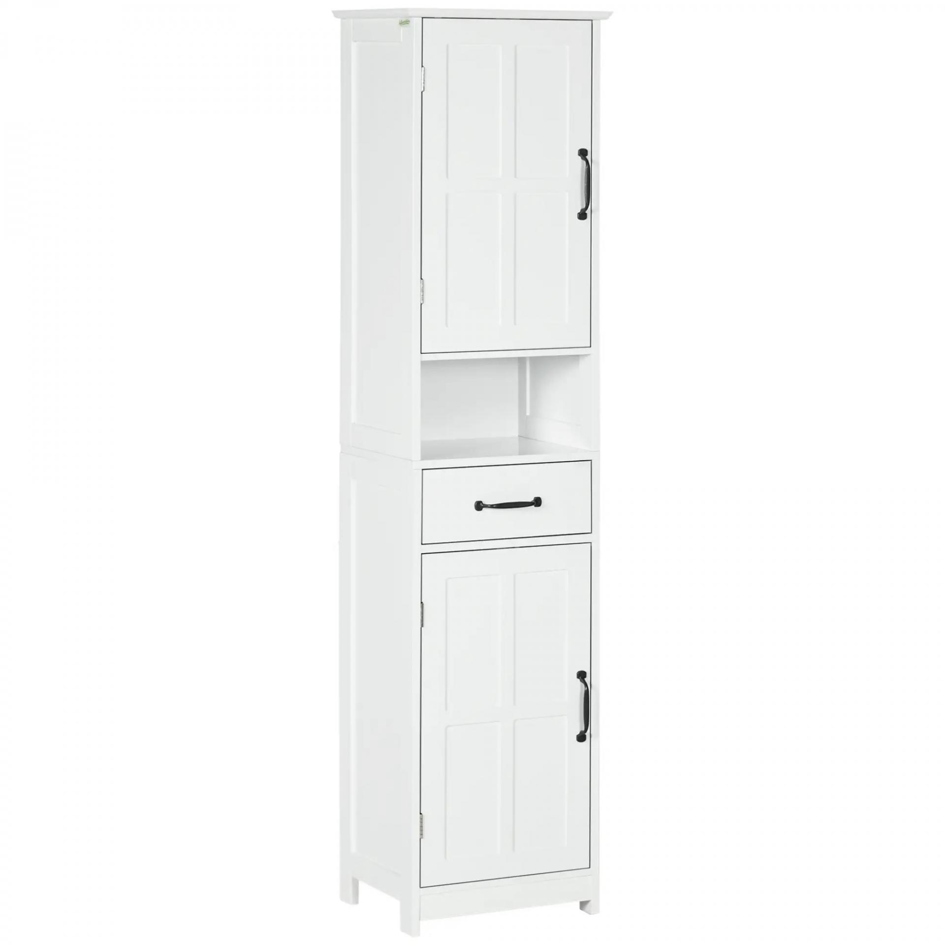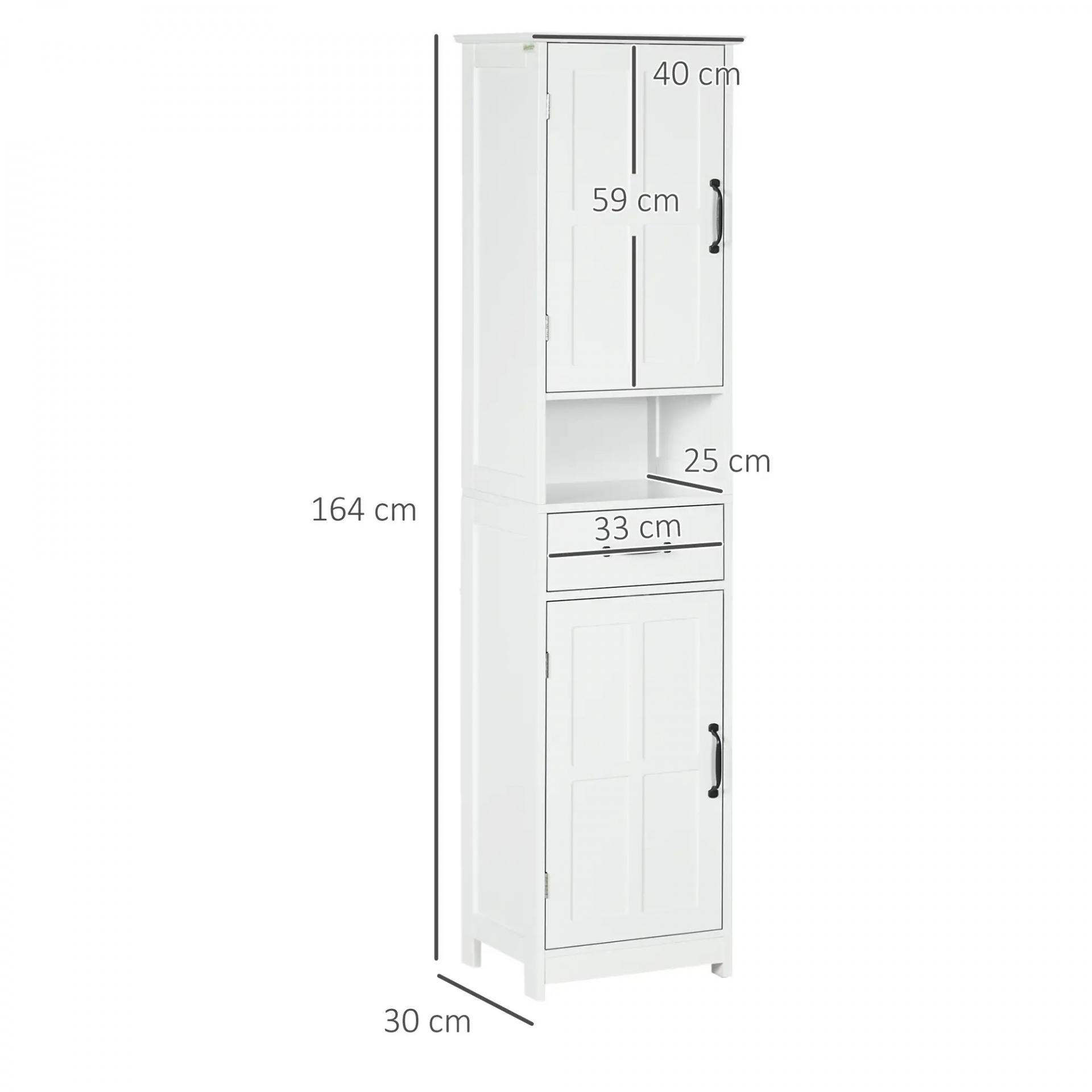 Columna de Baño con 2 Puertas 1 Cajón Estante Abierto y 2 Armarios con Estante Ajustable 40x30x164 cm Blanco
