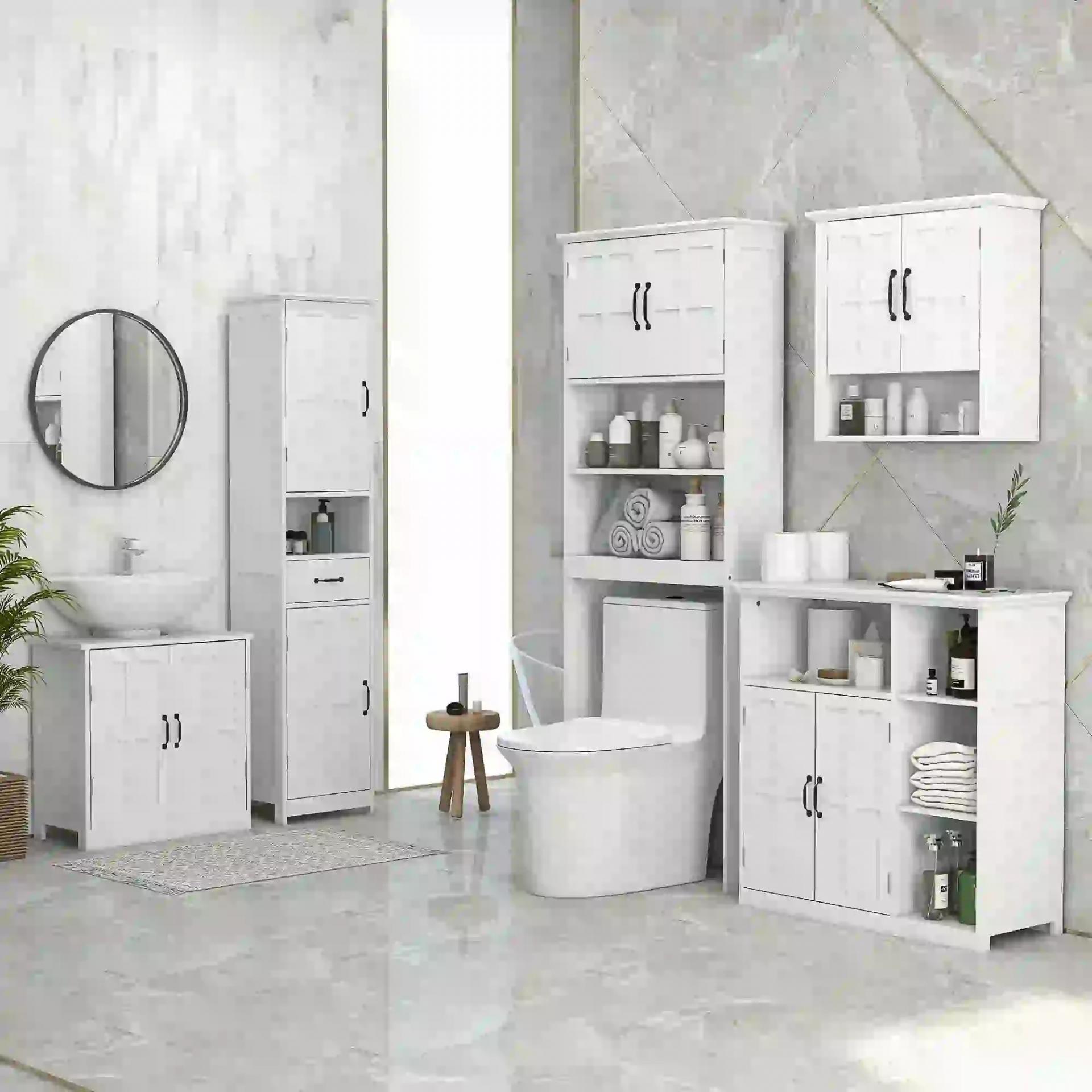- DISEÑO ELEGANTE Y FUNCIONAL: Combina madera y blanco con puertas enmarcadas para añadir estilo clásico y encanto natural a tu baño, integrándose fácilmente con tu decoración.
