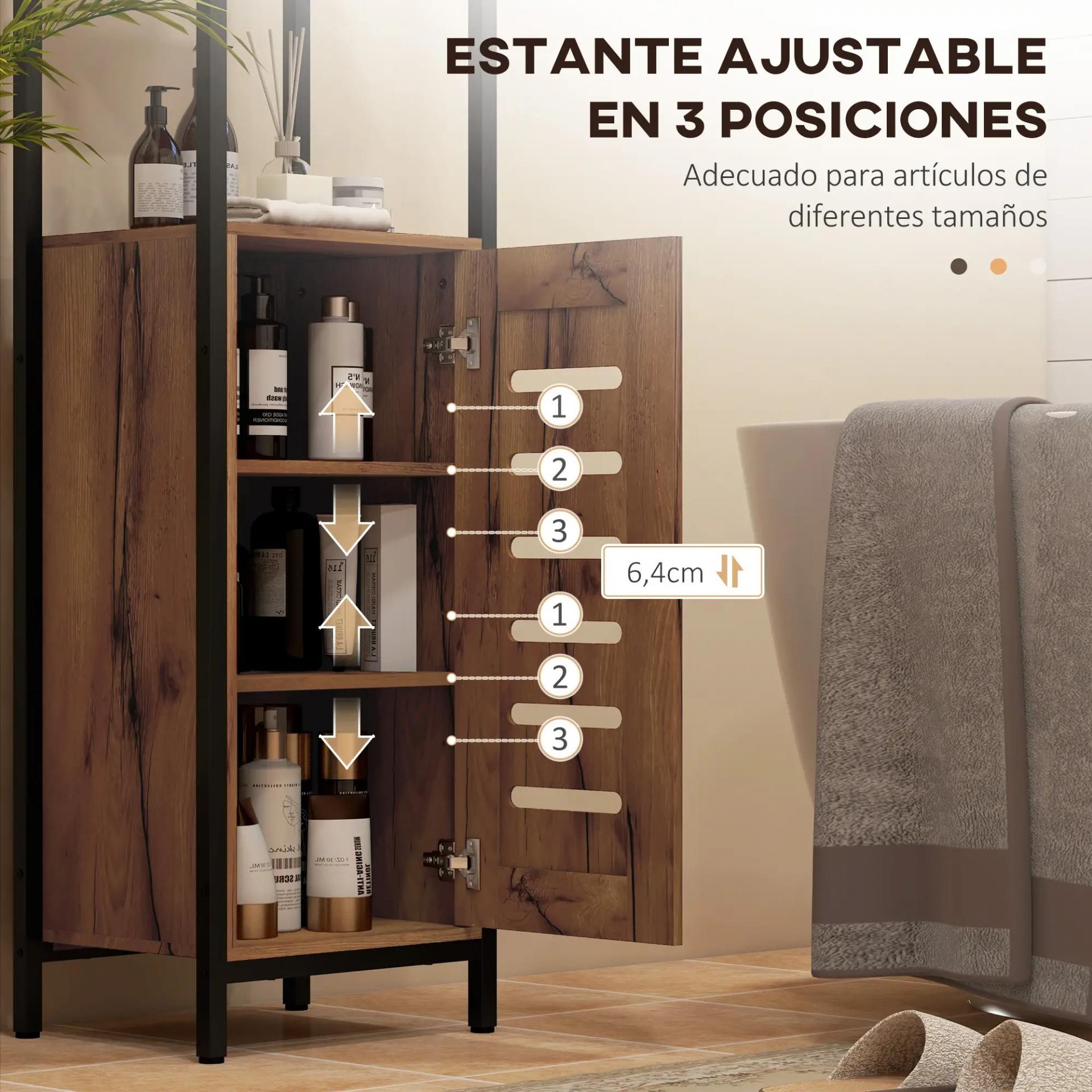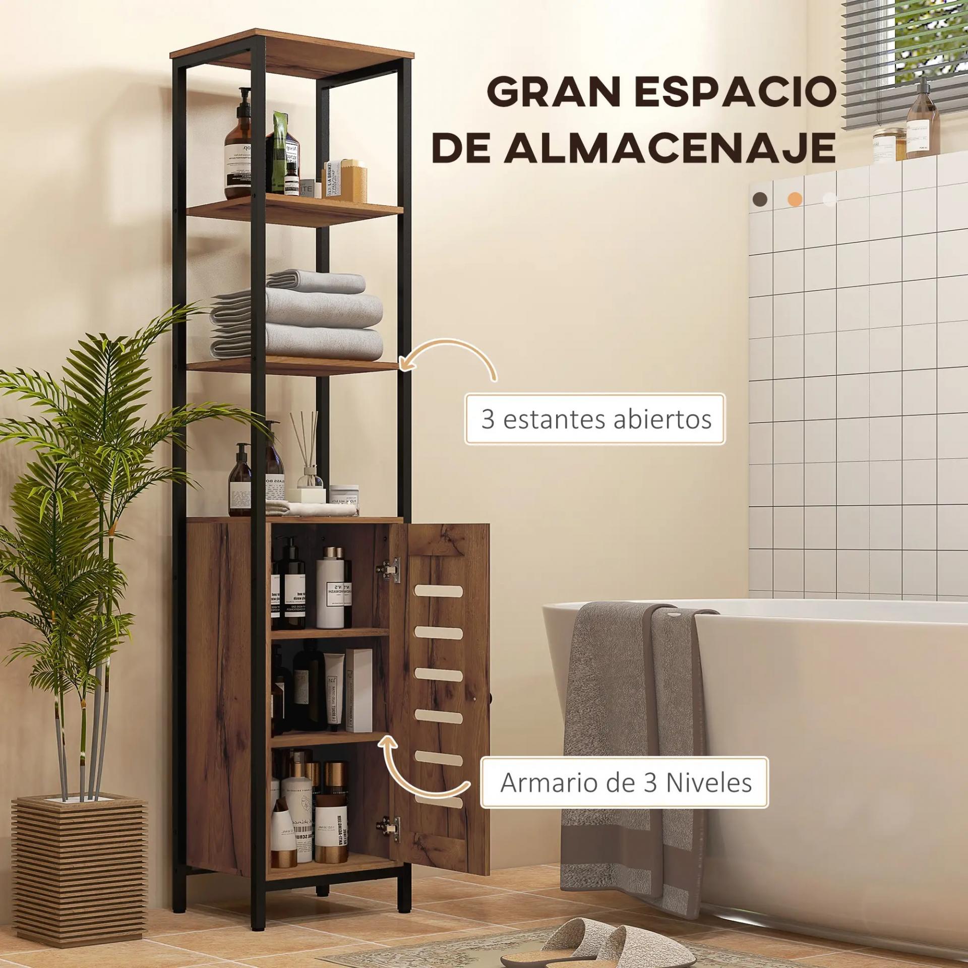 - ESTILO INDUSTRIAL: El mueble auxiliar de baño combina paneles de madera rústica con estructura de acero negro, logrando un diseño moderno y elegante. Su formato compacto aprovecha al máximo espacios reducidos o rincones estrechos