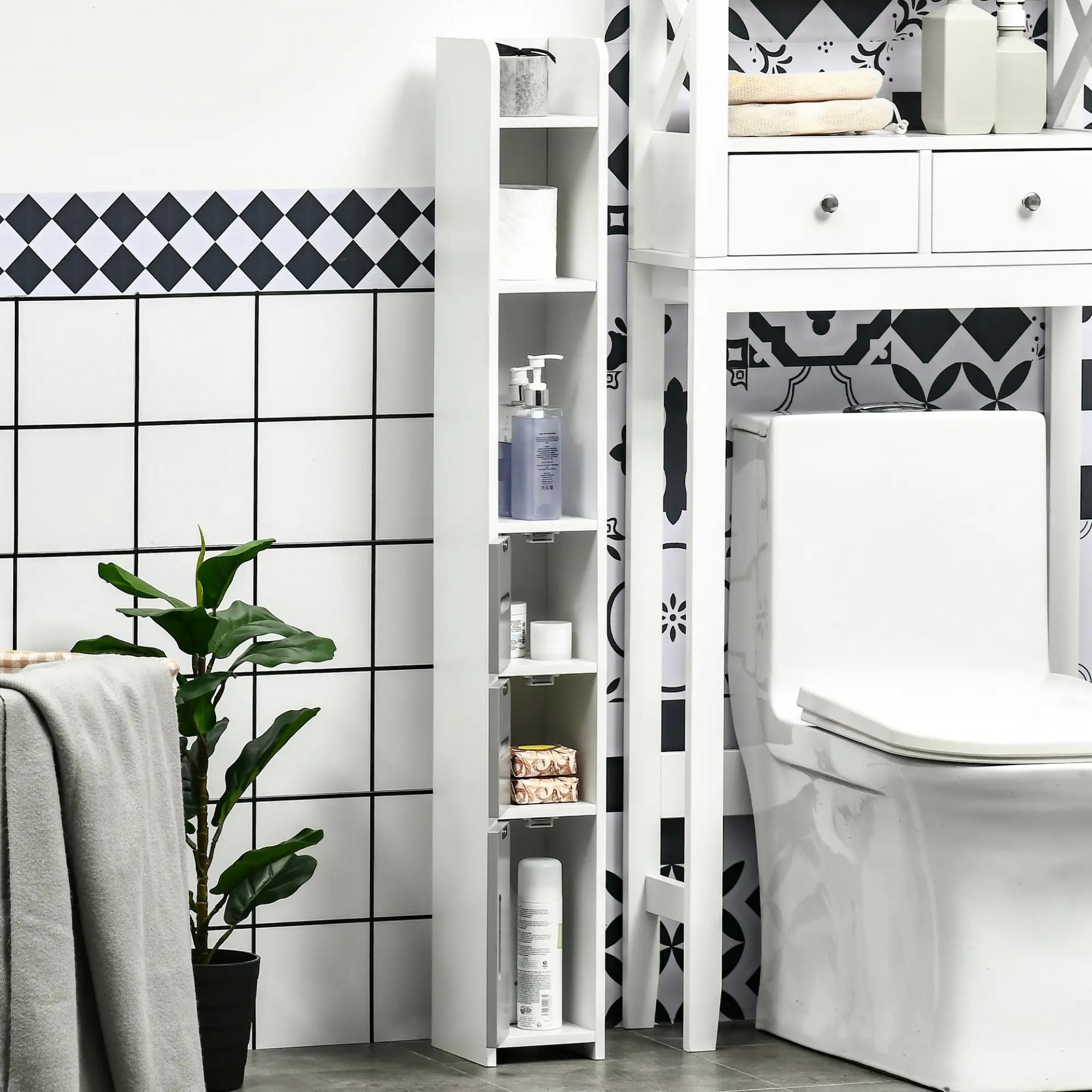 DISEÑO COMPACTO: Gracias a su diseño vertical y compacto, este armario de baño estrecho es perfecto para tenerlo en el baño o en espacios estrechos o rincones de la cocina, salón o donde necesites espacio extra de almacenaje