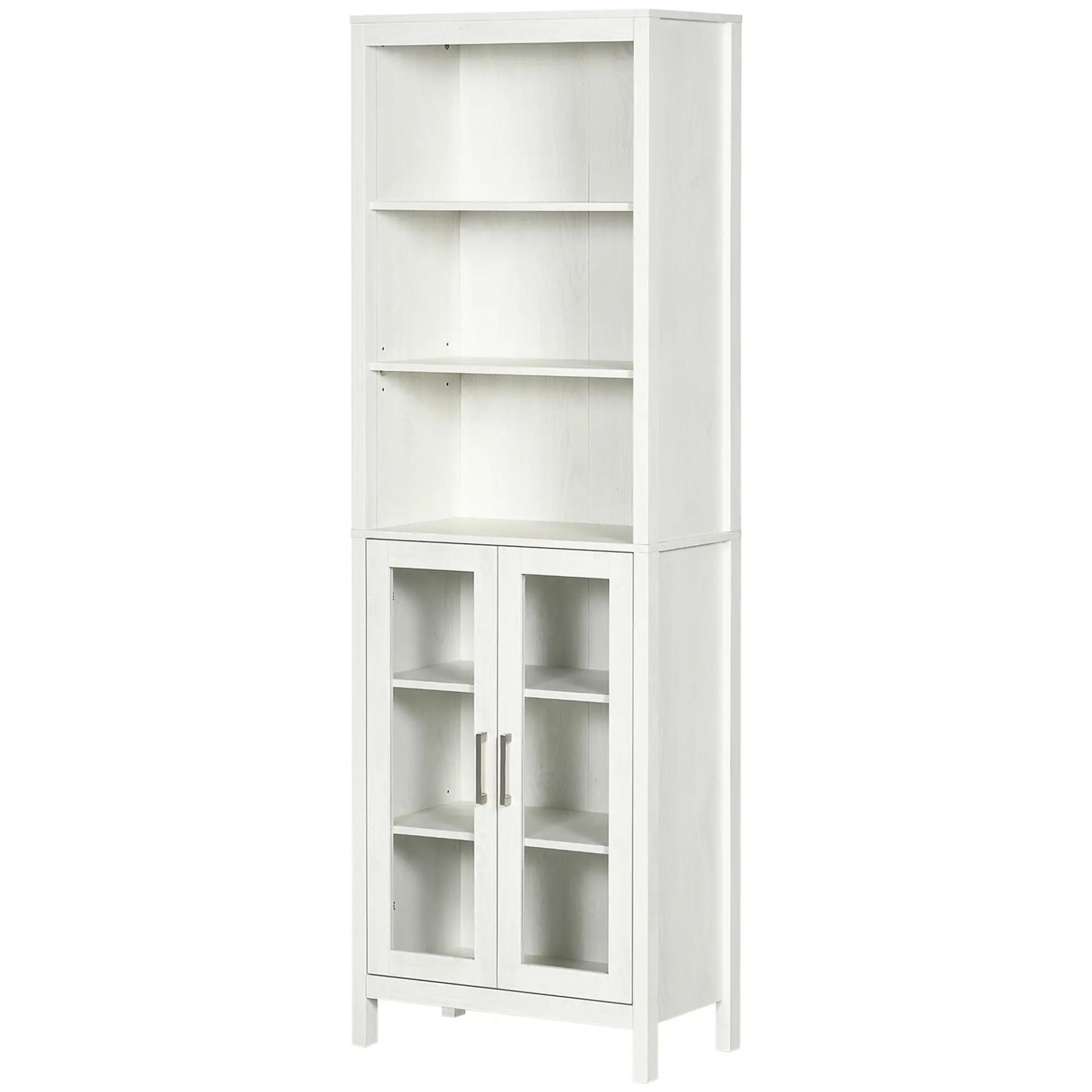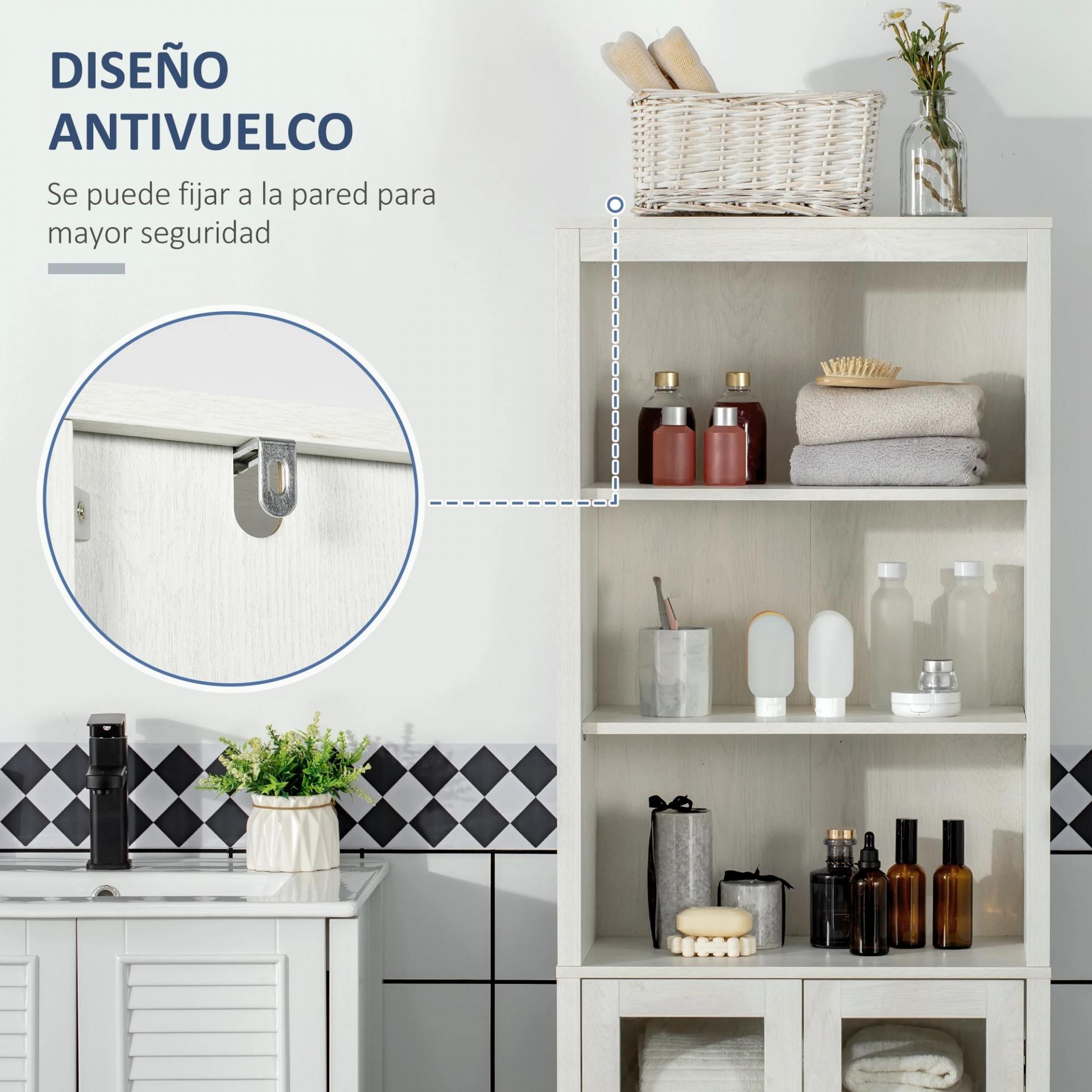 Columna de Baño con 2 Puertas de Vidrio y 3 Estantes Mueble Auxiliar de Estilo Moderno 53x30x162 cm Blanco