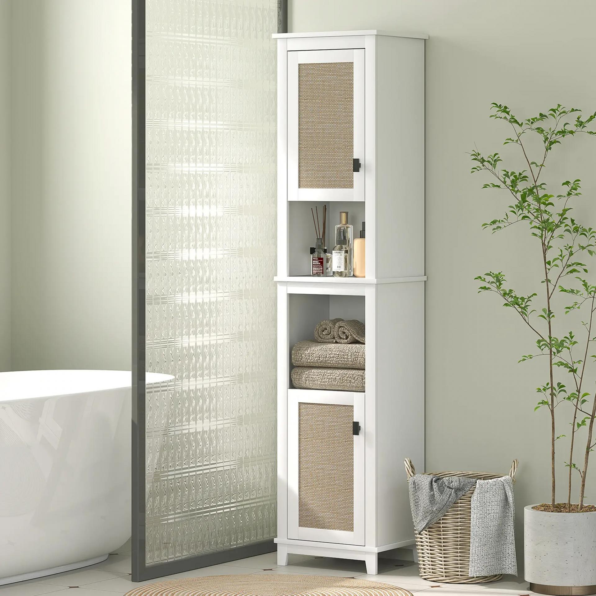 Columna de Baño con Estantes Ajustables 2 Puertas con Frontal de Ratán y 2 Compartimentos 40x30x167,5 cm Blanco
