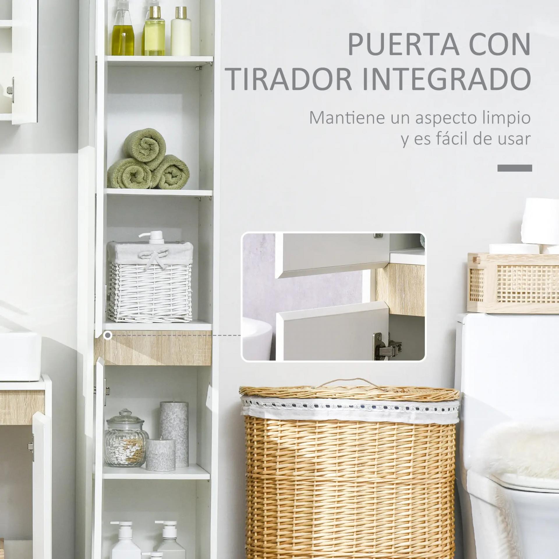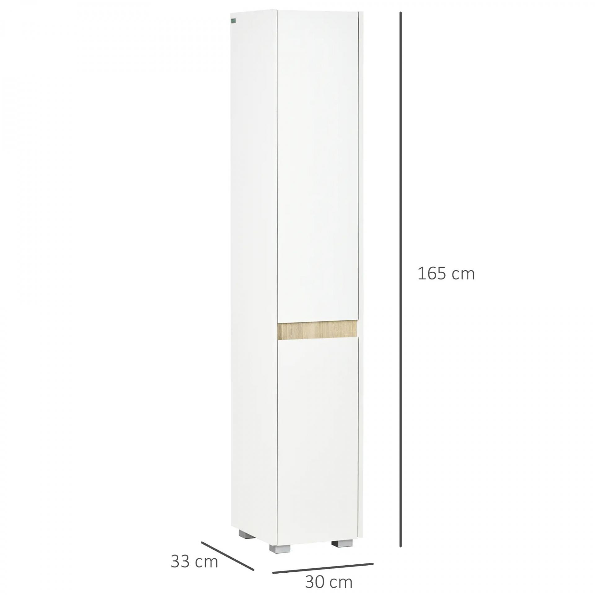 Columna de Baño Armario Alto Auxiliar con Estantes Ajustables para Ducha Aseo Dormitorio 30x33x165 cm Blanco