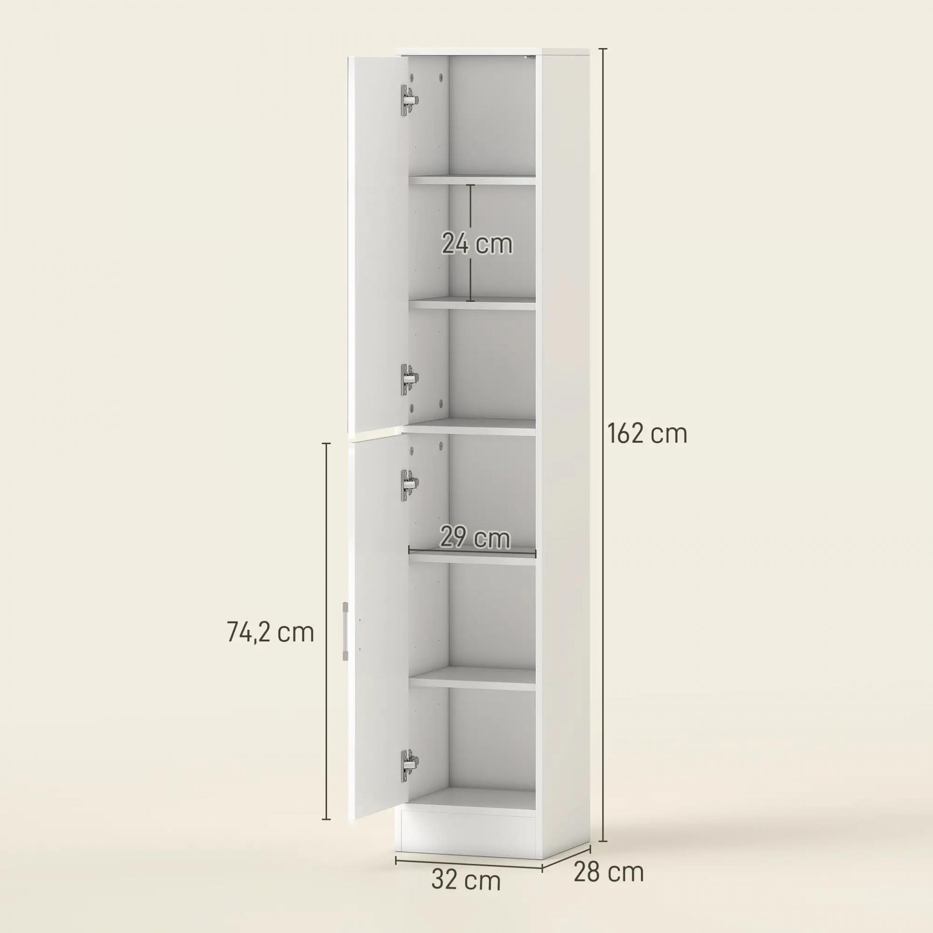 Armario para Baño Alto Mueble Columna de Baño con Espejo 2 Puertas y Estantes Ajustables Multiusos 32x28x162 cm Blanco