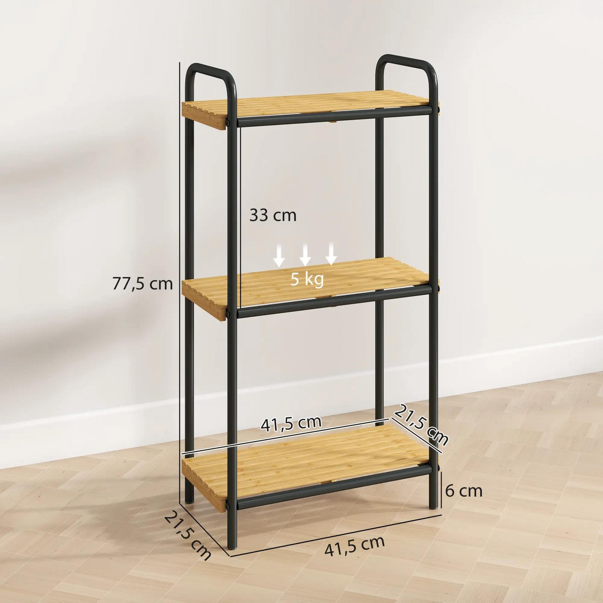 Estantería de Baño de Bambú con 3 Baldas Abiertas Diseño de Lamas y Estructura de Acero 41,5x21,5x77,5 cm Natural